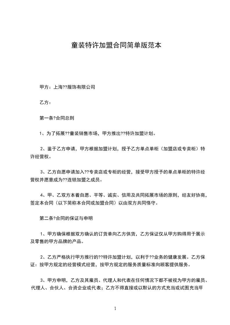 1、为了拓展??童装销售市场,甲方推出??特许加盟计划。