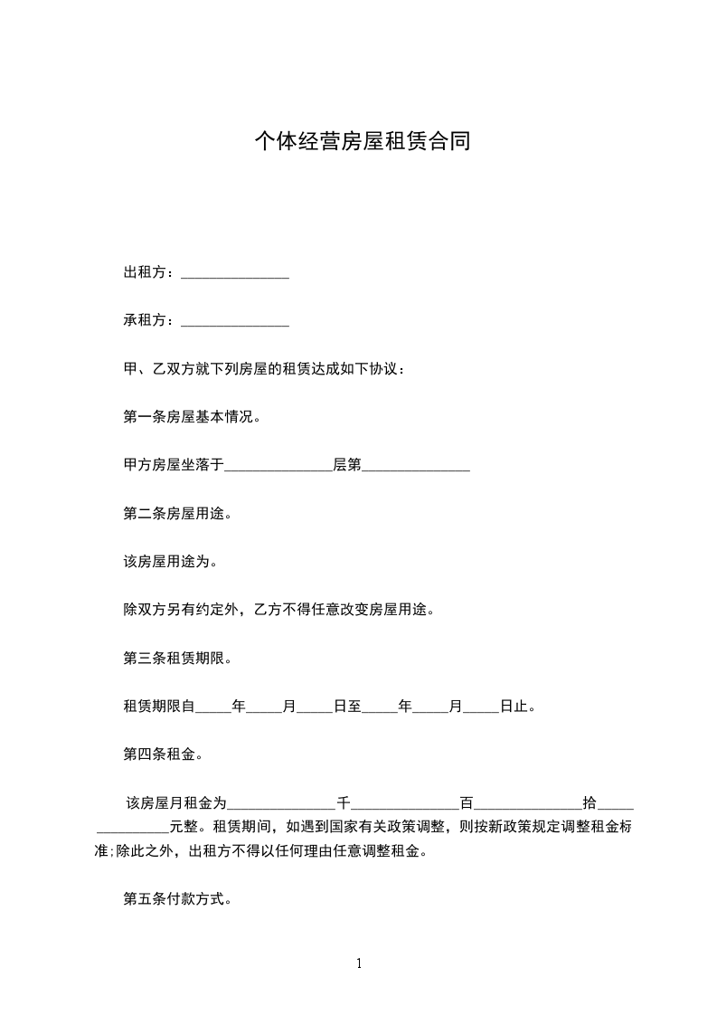 出租方:______(以下简称甲方)