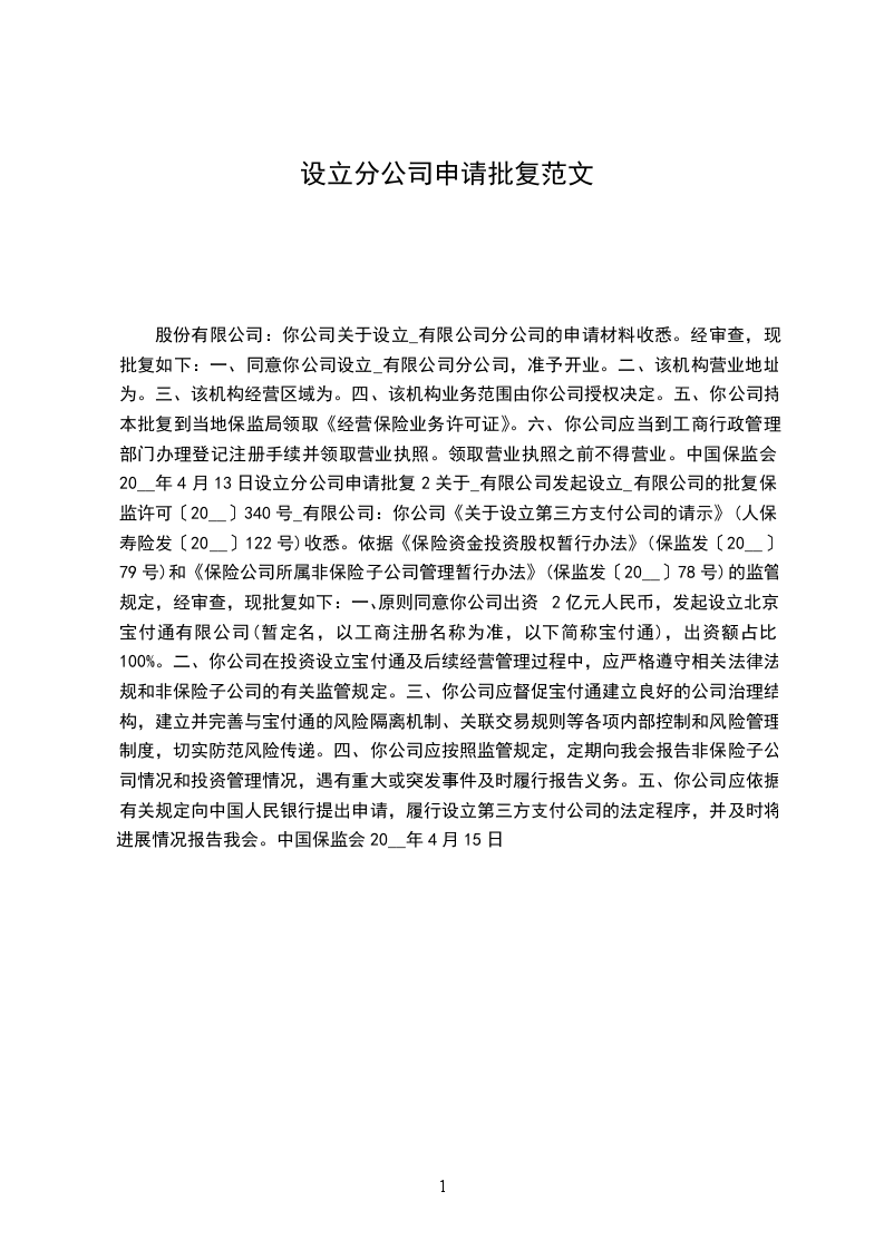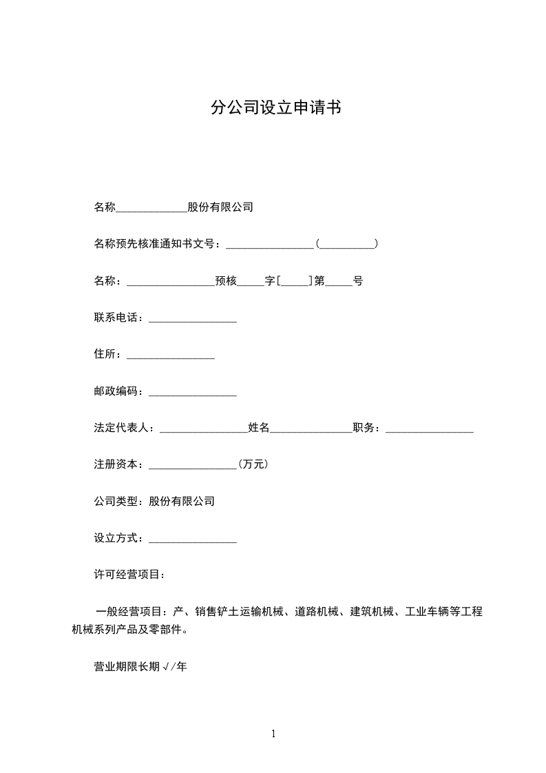 名称预先核准通知书文号:________________(__________)