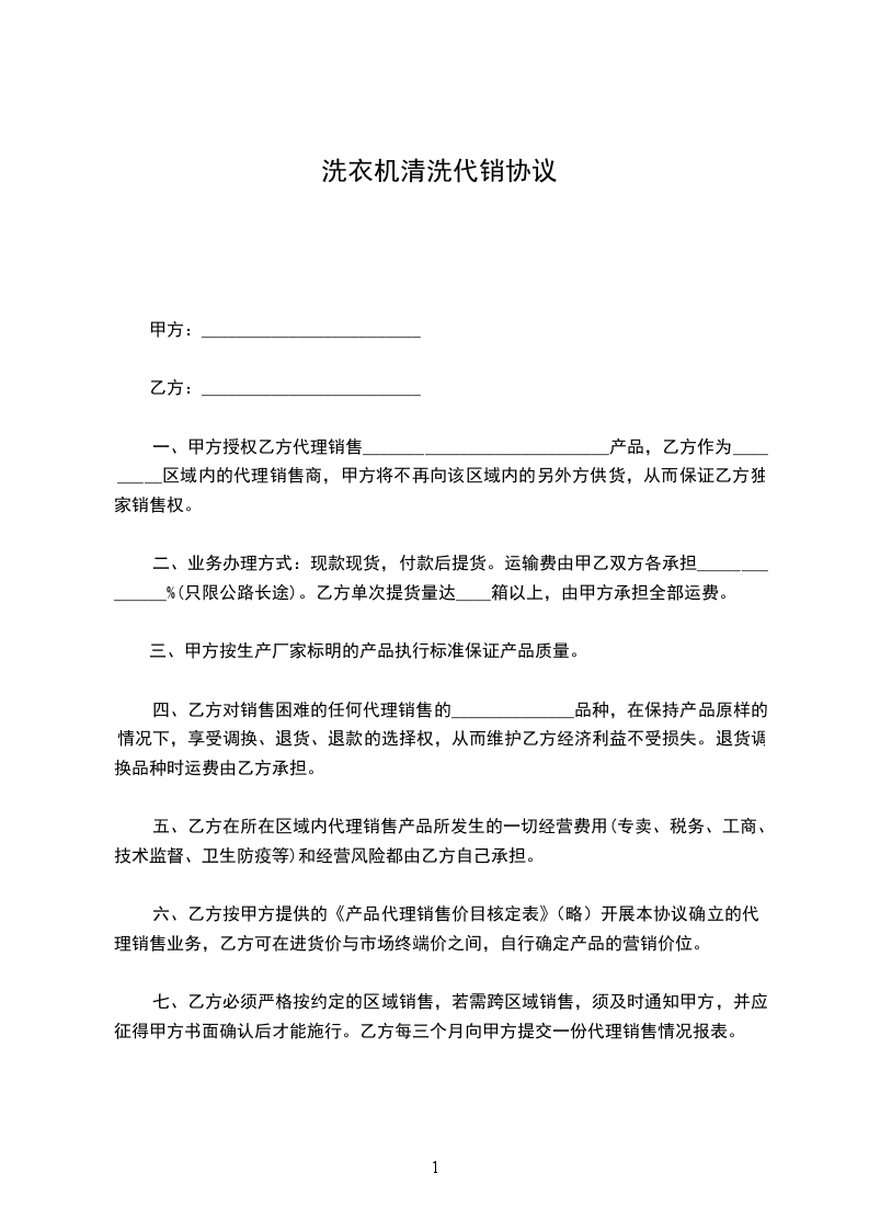 洗衣机清洗代销协议