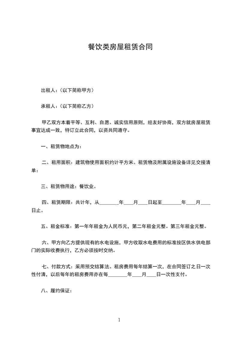三、租赁物用途:餐饮业。