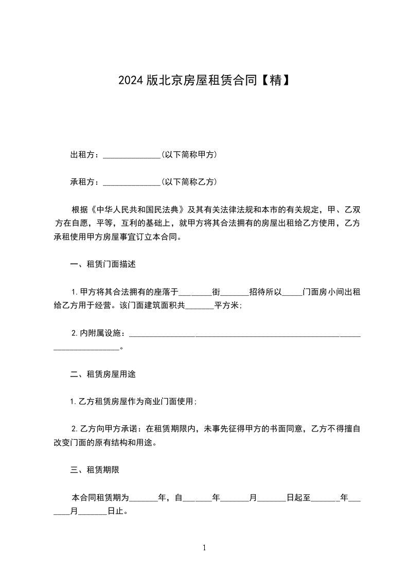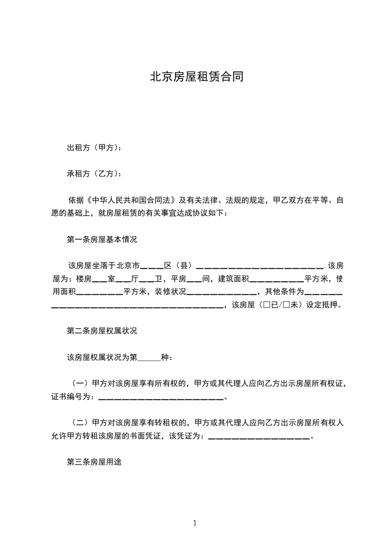 (一)房屋租赁期自________年____月____日至________年____月____日,共计________年