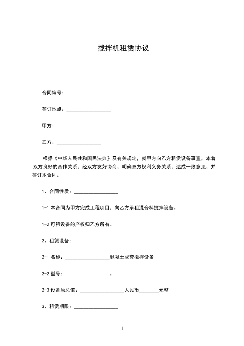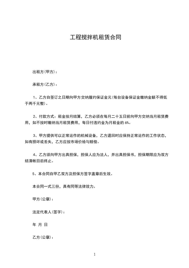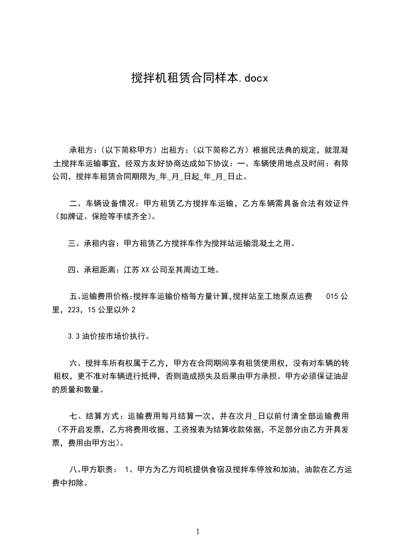 三、承租内容:甲方租赁乙方搅拌车作为搅拌站运输混凝土之用。