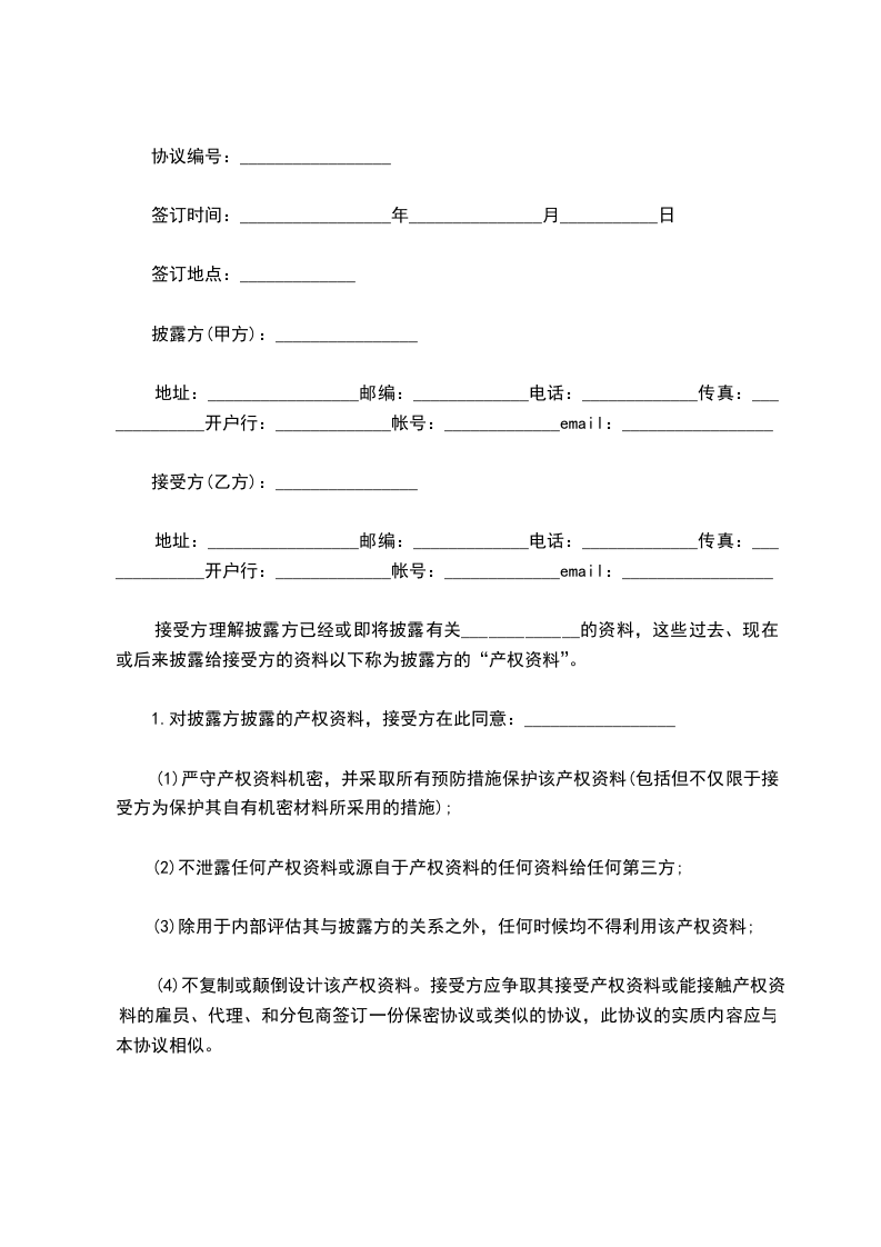 1.对披露方披露的产权资料,接受方在此同意:_________________