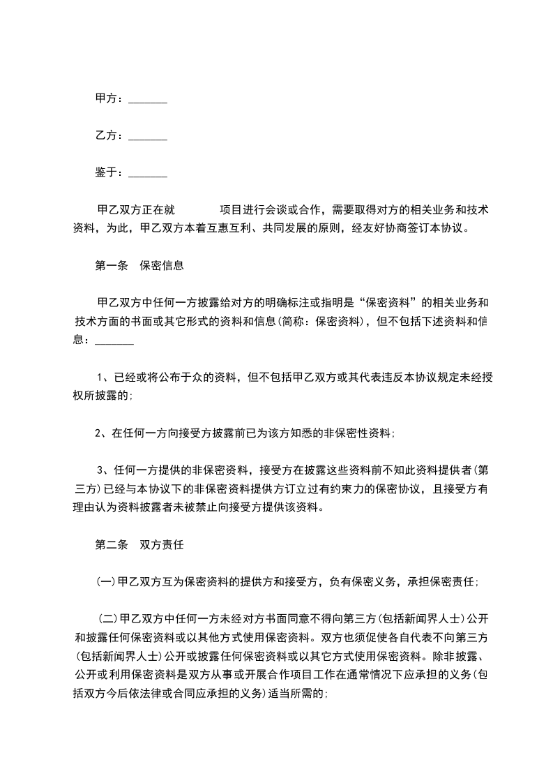 2.未准予任何权利或许可的条件下,披露方同意上述条款不适用于披露后_____________年以后的任何资料,也不适用于接受方能说明其具有下述情形的任何资料:_________________