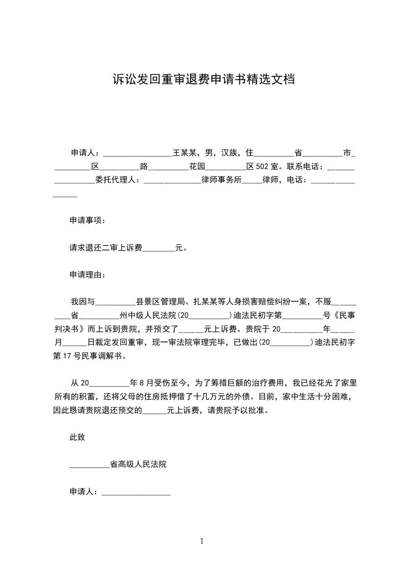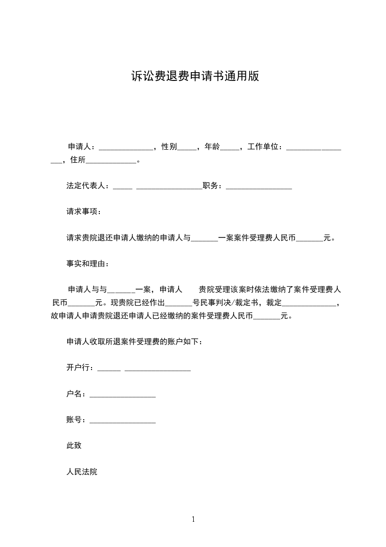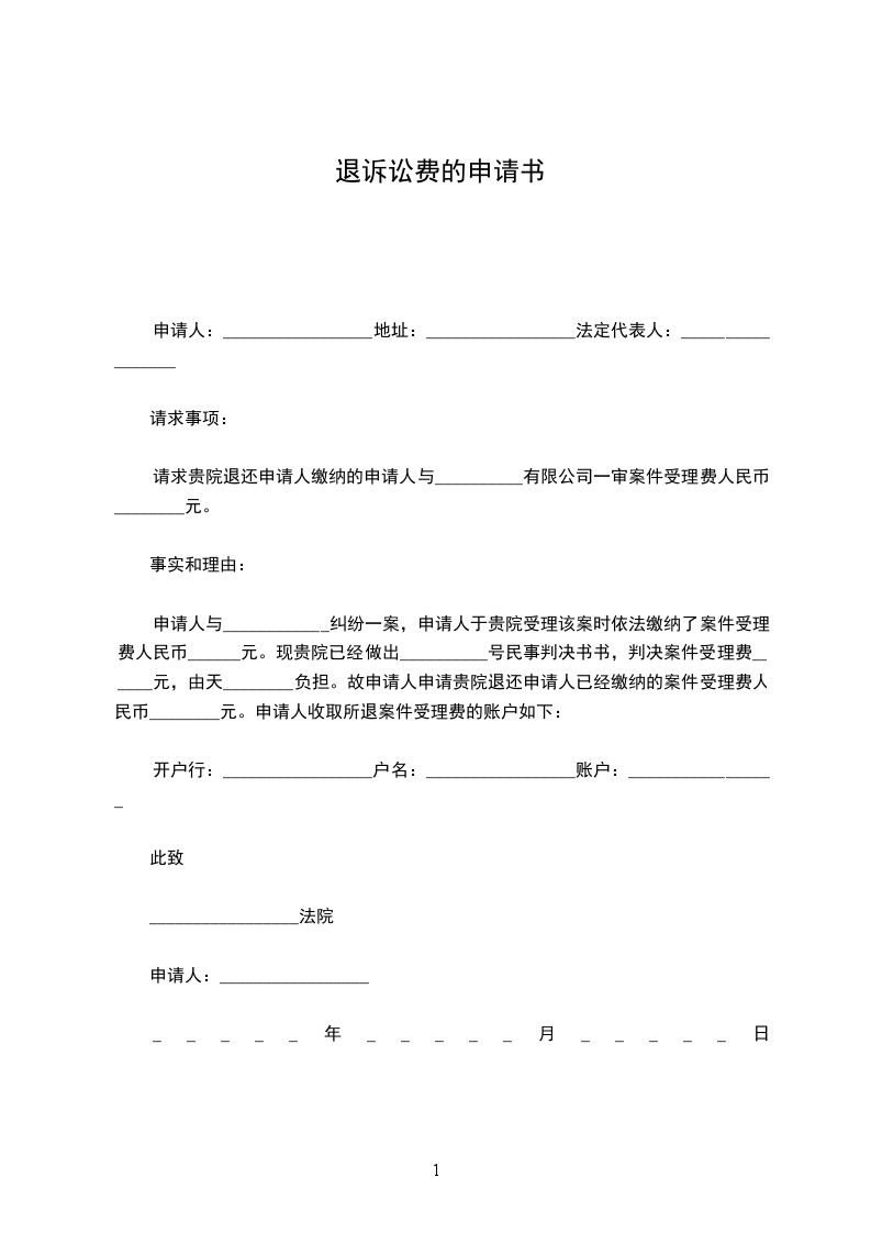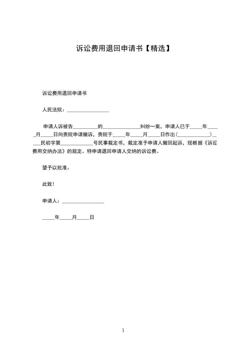 申请人诉被告__________的_______________纠纷一案,申请人已于_____年_____月_____日向贵院申请撤诉,贵院于_____年_____月_____日作出(_____________)_____民初字第_____________号民事裁定书,裁定准予申请人撤回起诉,现根据《诉讼费用交纳办法》的规定。特申请退回申请人交纳的诉讼费。