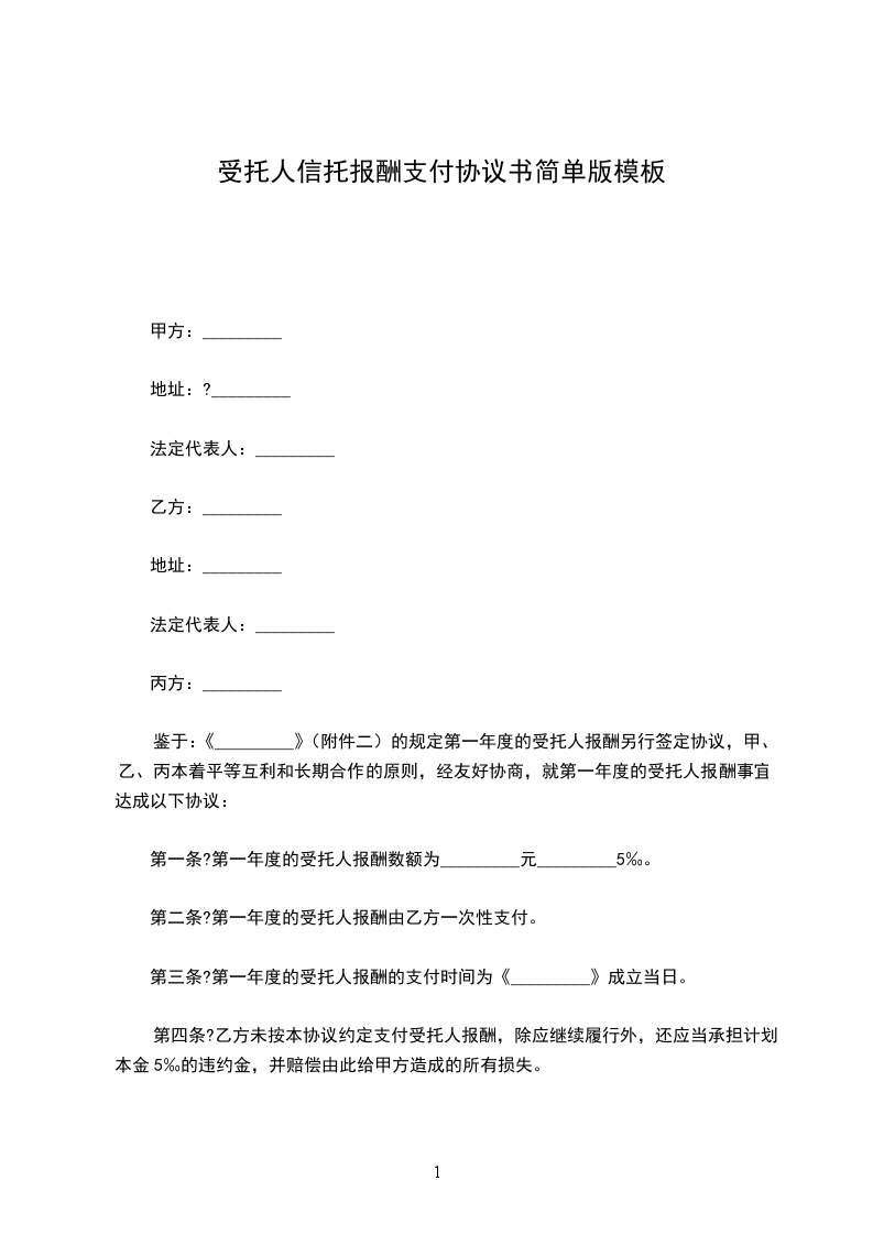 第一条?第一年度的受托人报酬数额为_________元_________5‰。