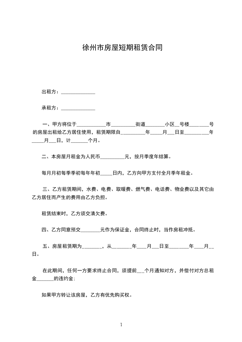 五、房屋租赁期为,从________年____月____日至________年____月____日。在此期间,任何一方要求终止合同,须提前三个月通知对方,并偿付对方总租金的违约金;如果甲方转让该房屋,乙方有优先购买权。