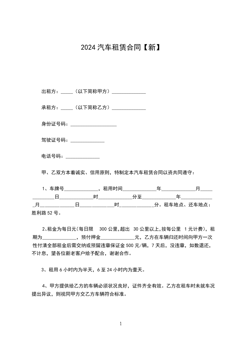 3、如发现乙方有期骗违约等不良行为,甲方有权随时终止合同并收回所租车辆,并处500—5000元罚金。