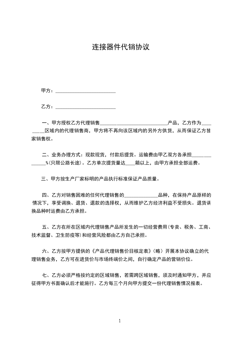 为规范甲、乙双方合作的运作流程,进一步明确甲、乙双方合作当事人的权利及义务,甲、乙双方就甲方委托乙方代为销售____________事宜,本着平等自愿、诚实守信、合法共赢、友好协商的原则,达成如下协议: