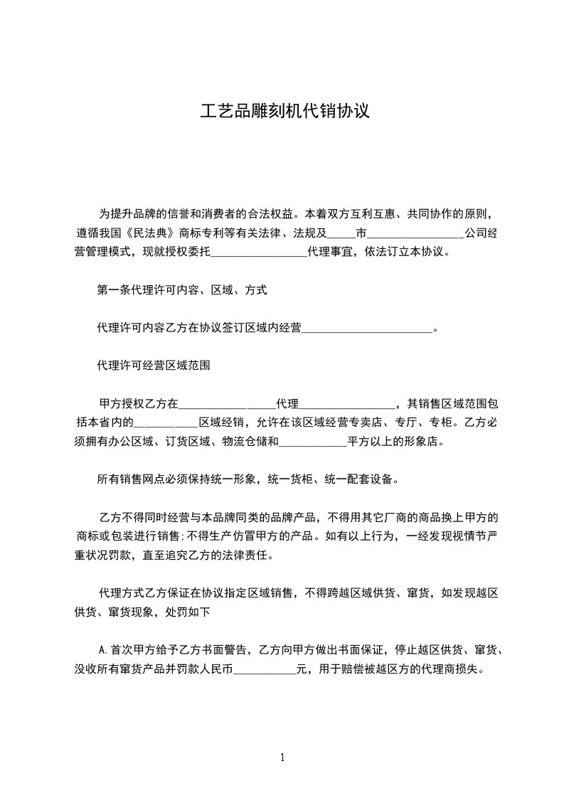 1.甲方授权乙方在规定的销售区域经销_________________品牌专卖、专厅、专柜的产品。