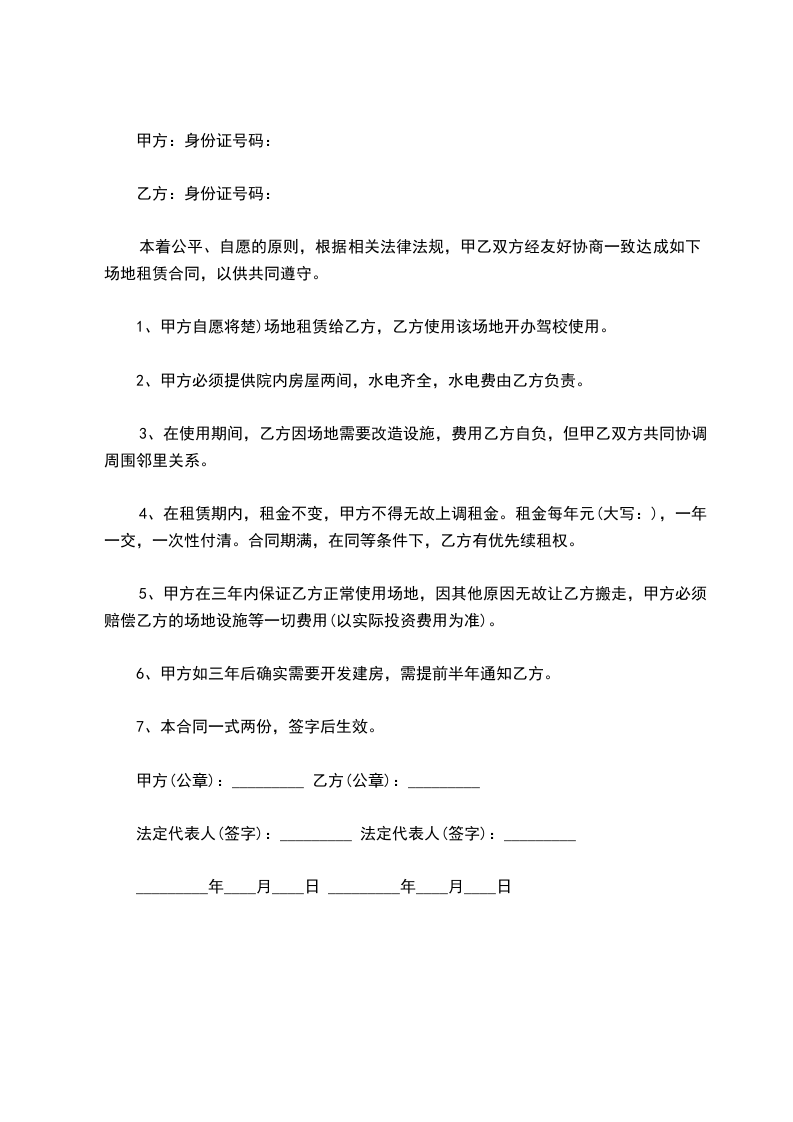 7.7乙方将场地转让给第三人或和其他人交换使用场地的,应先征得甲方的书面同意,按规定办理相关手续。