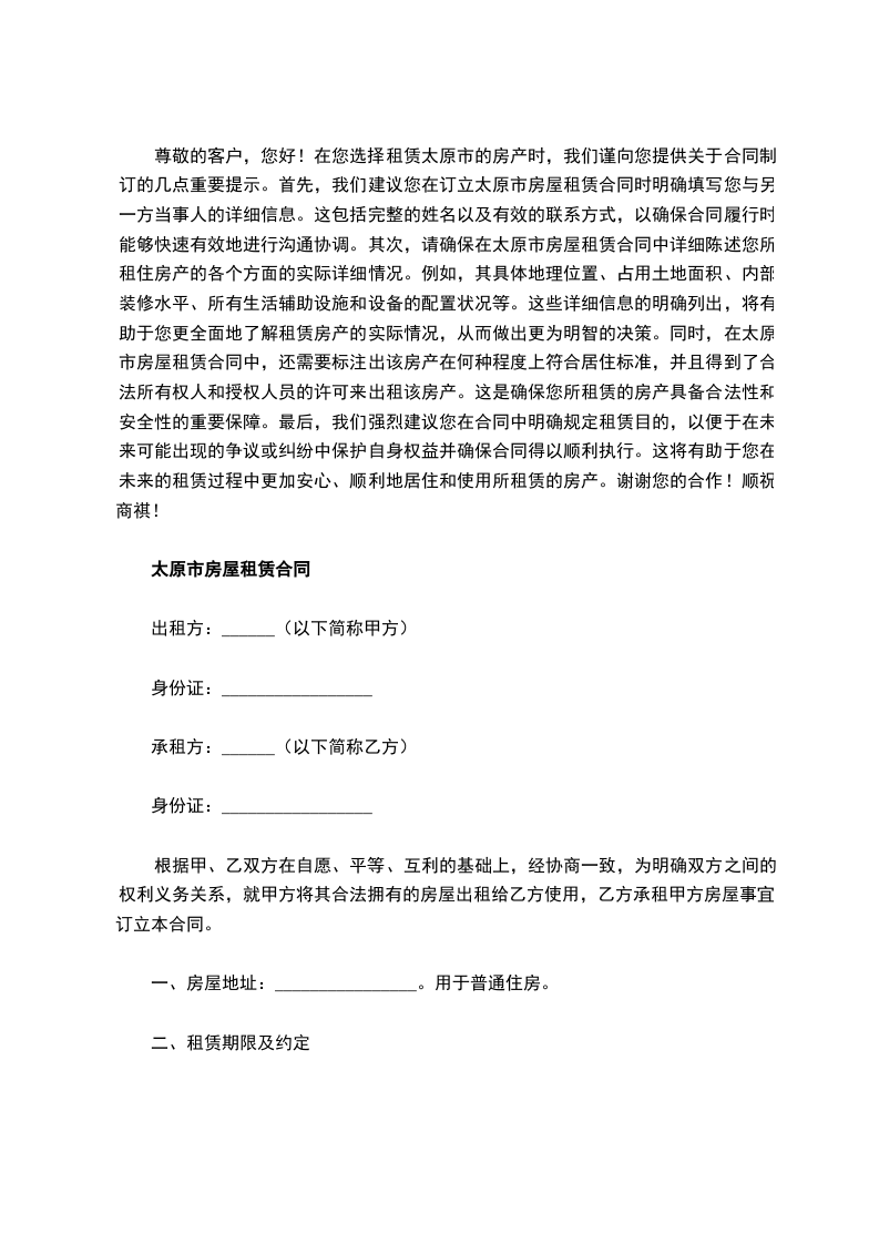 1、该房屋租赁期共一年。自________年____月____日起至________年____月____日止。
