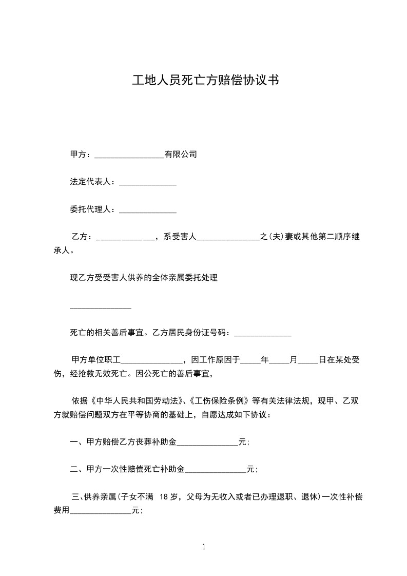 一、甲方赔偿乙方丧葬补助金_______________元;