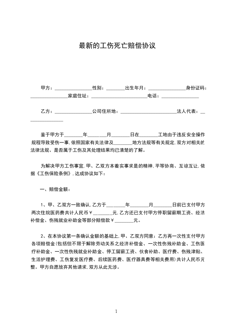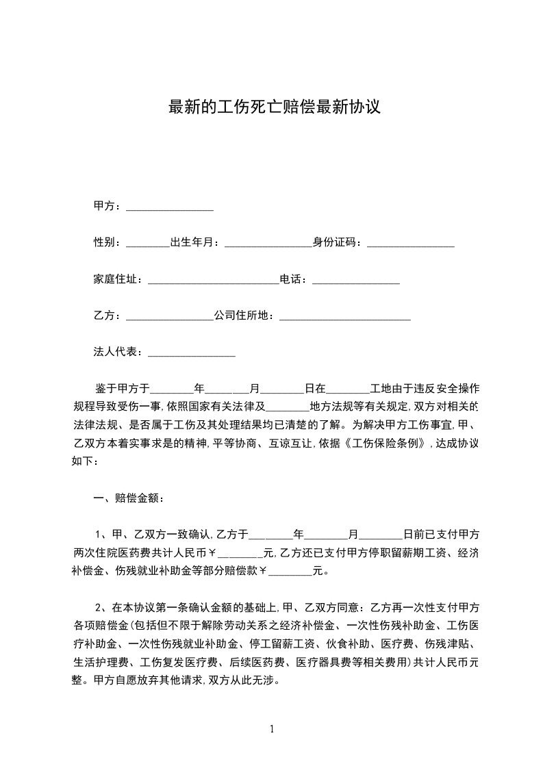 为妥善处理______________因公死亡的善后事宜,依据《中华人民共和国劳动法》、《工伤保险条例》等有关法律法规,现甲、乙双方就赔偿问题双方在平等协商的基础上,自愿达成如下协议: