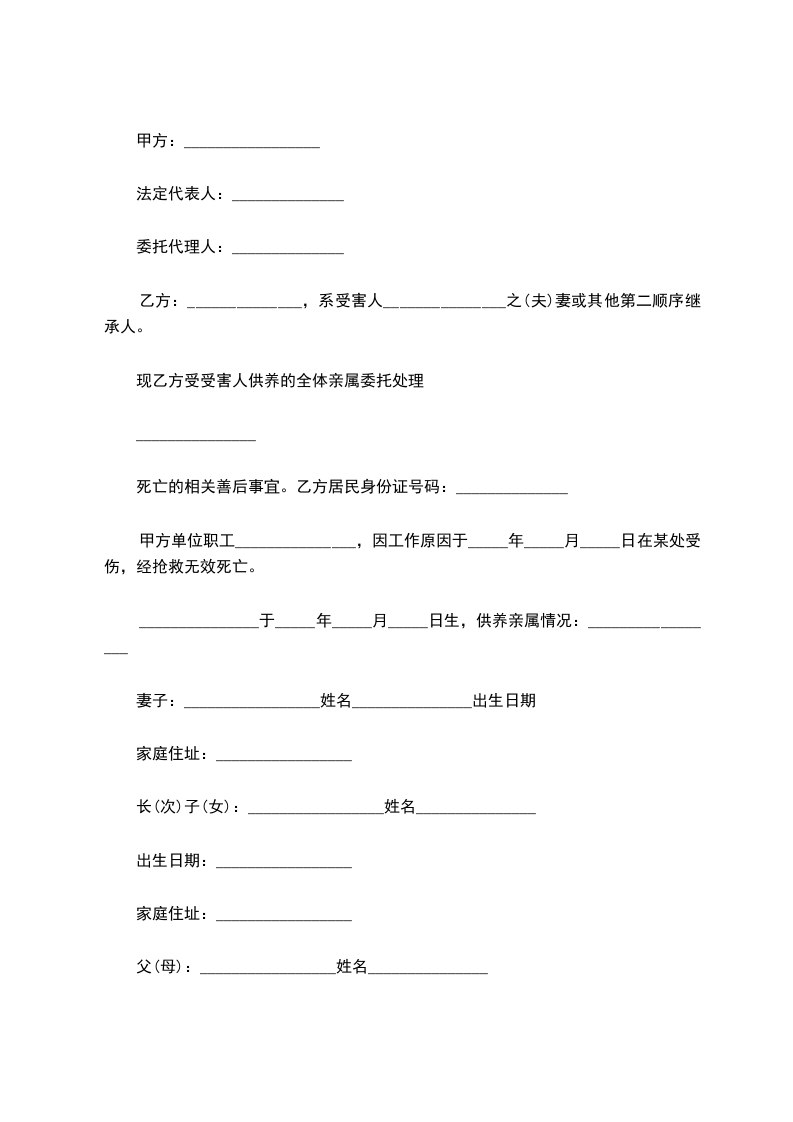 现乙方受受害人供养的全体亲属委托处理