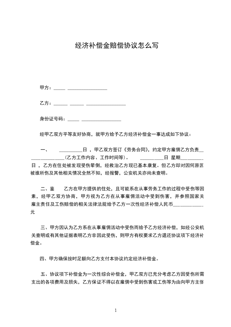 一、甲方同意支付乙方经济补偿金,同时自本协议生效之日起,甲方应于_____年_____月_____日前,支付乙方因甲、乙双方协商一致,解除劳动、保险关系的经济补偿金。
