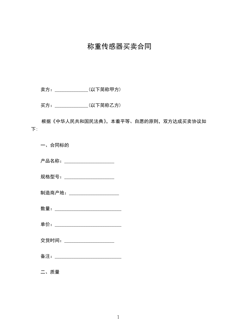 称重传感器代销协议