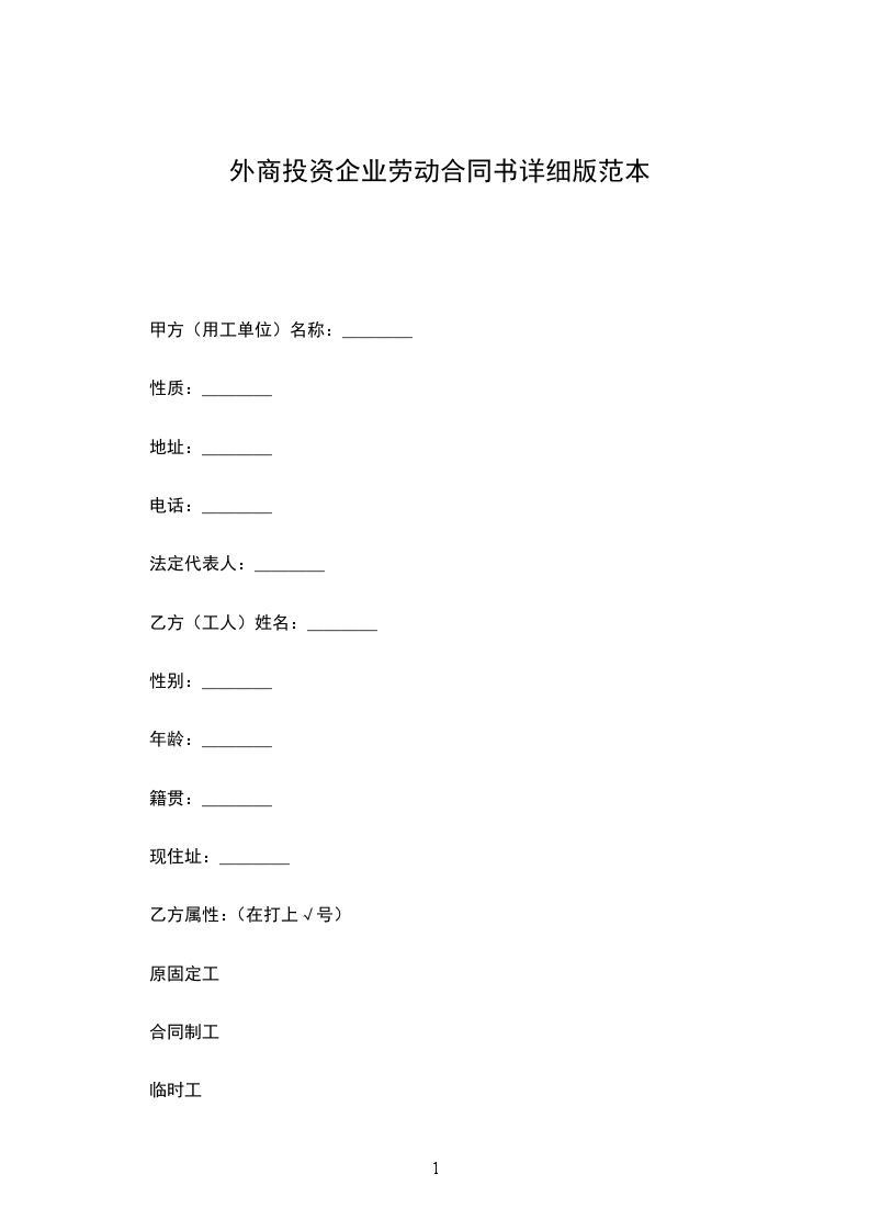 乙方属性:(在打上√号)