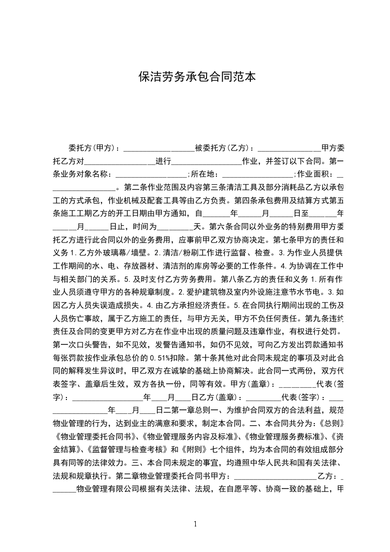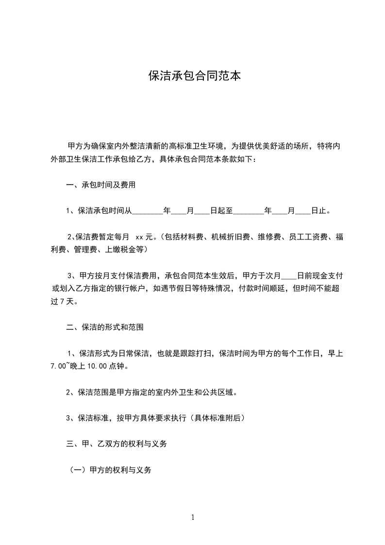 1、保洁承包时间从________年____月____日起至________年____月____日止。