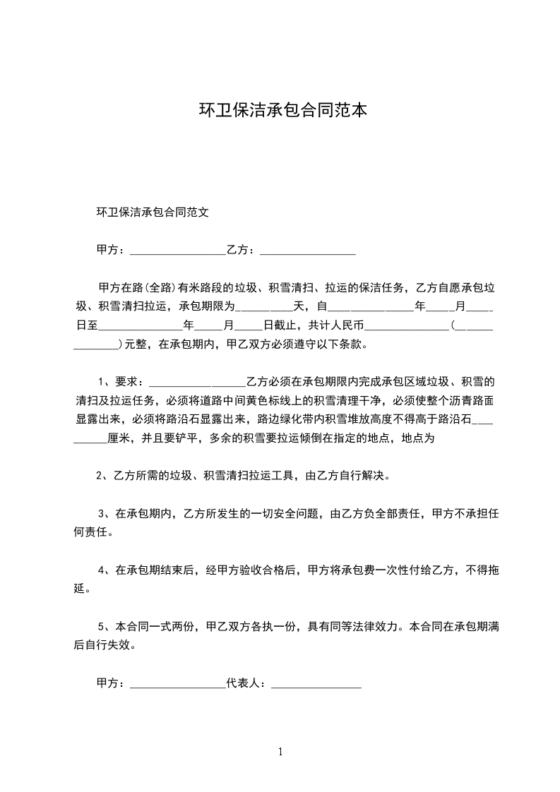 甲方为确保室内外整洁清新的高标准卫生环境,为提供优美舒适的场所,特将内外部卫生保洁工作承包给乙方,具体承包合同范本条款如下: