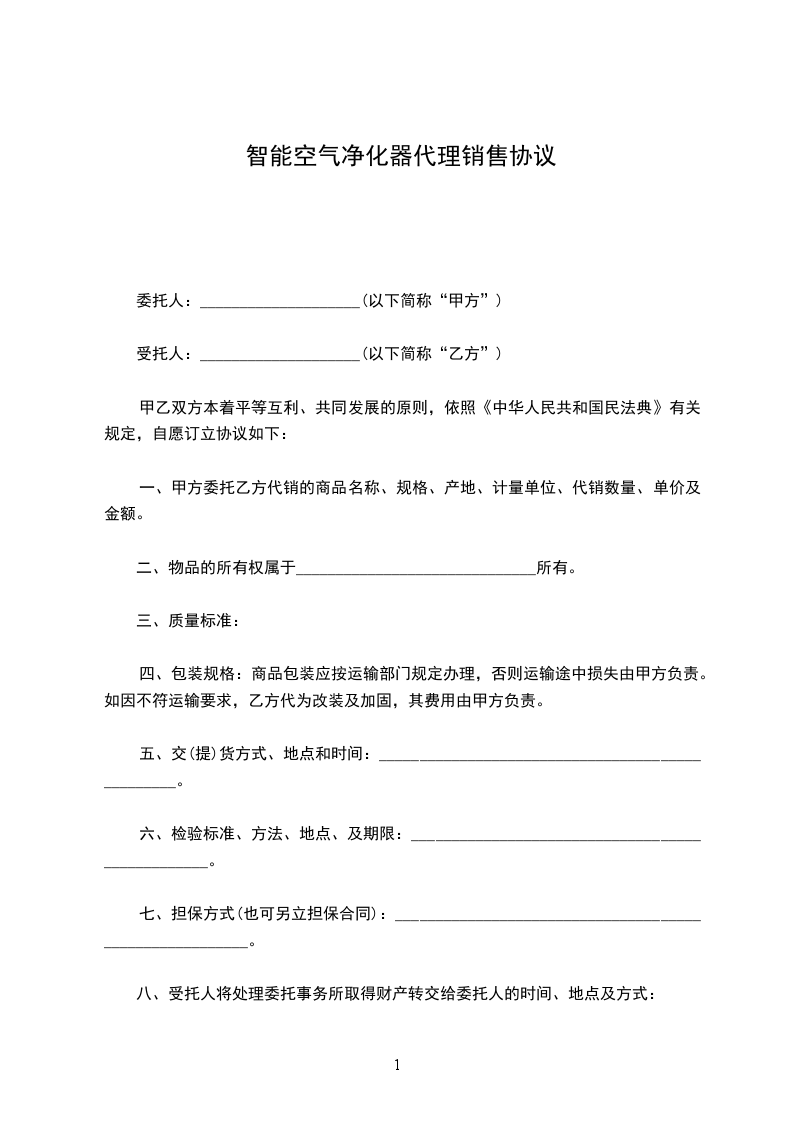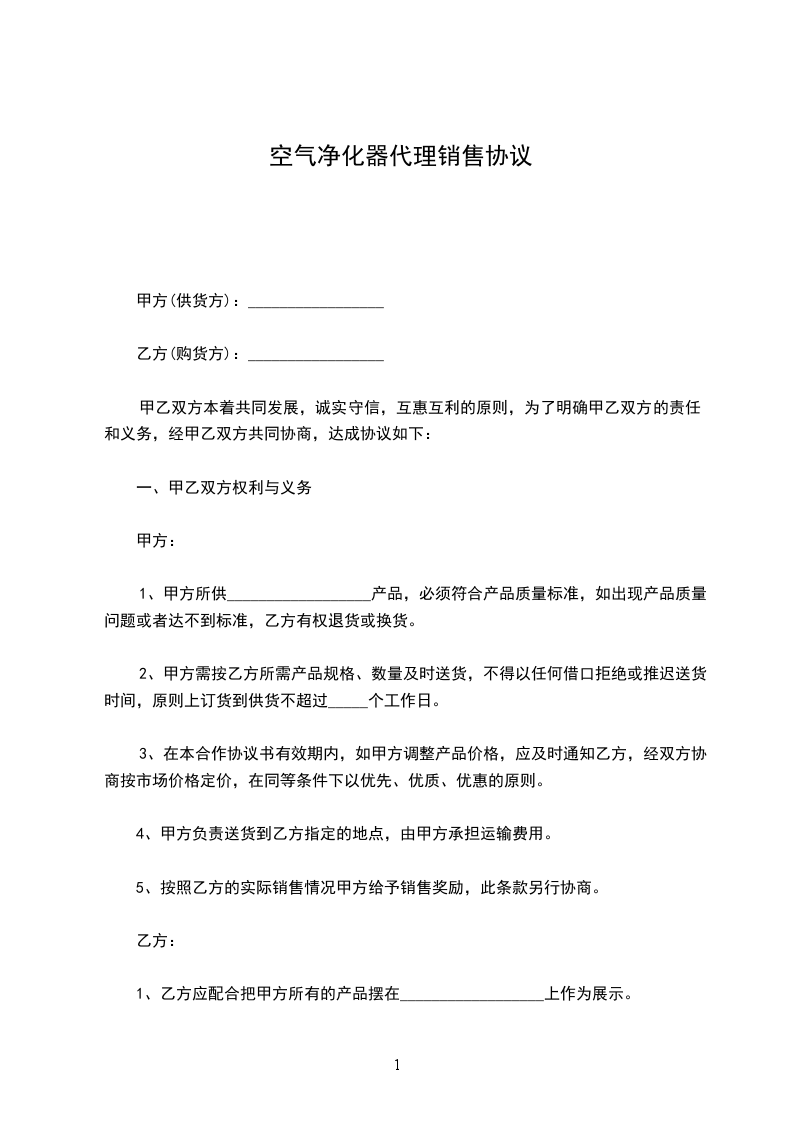 乙方就甲方产品(产品名:________________________________________________________________________________________)在________________(具体地址)自愿代销,甲方将产品直接铺货给乙方店面,甲方负责产品的全面推广和宣传以及推广和宣传产生的费用。乙方负责产品在店铺的销售,乙方对产品的定价一定要按照甲方定价来执行,不得随意调整价格。乙方在合同期内向甲方订货,甲方承诺首批所铺代销产品不收取乙方的任何形式的货款。在乙方卖出去产品后,按照甲乙双方约定的价格每月结算一次。