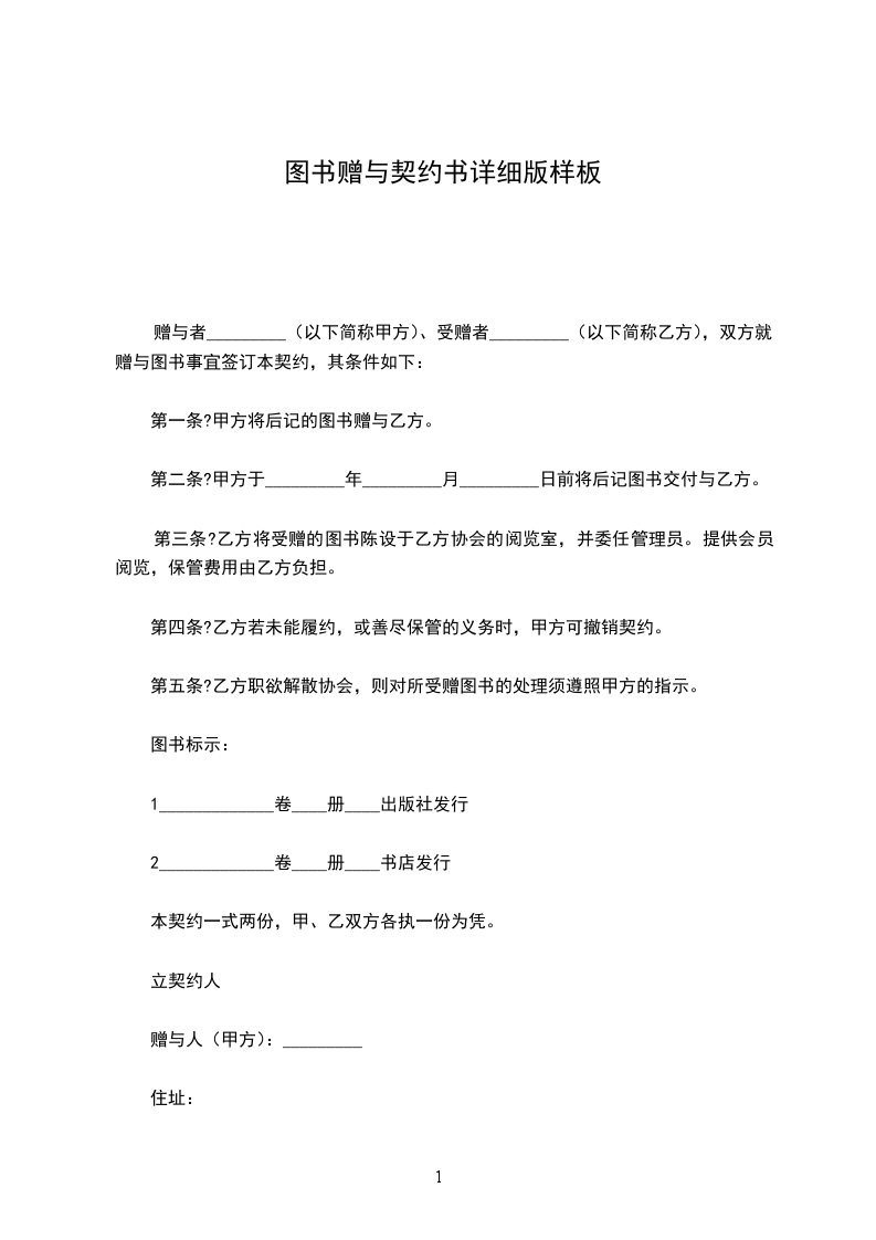 赠与者_________(以下简称甲方)、受赠者_________(以下简称乙方),双方就赠与图书事宜签订本契约,其条件如下: