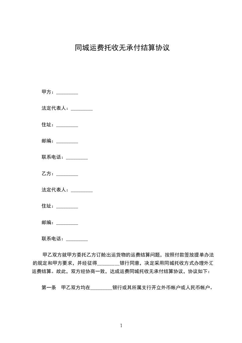 六、“同城特约委托收款”的结算手续费由甲方负责。