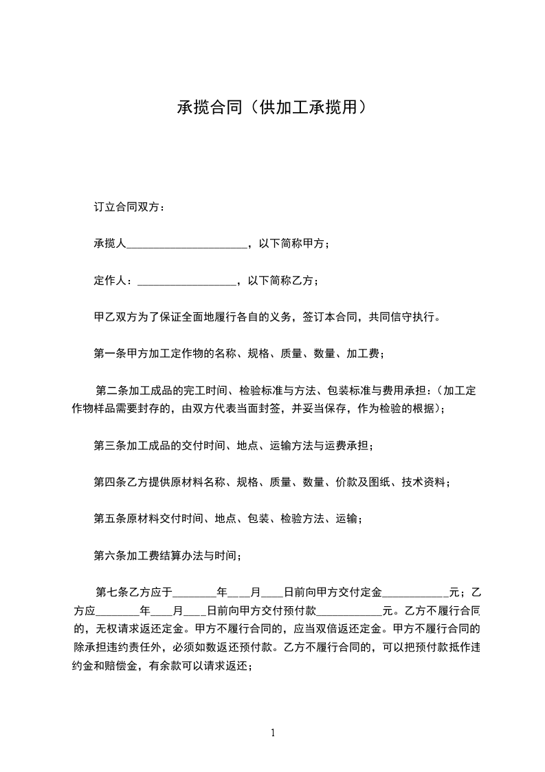第一条甲方加工定作物的名称、规格、质量、数量、加工费;