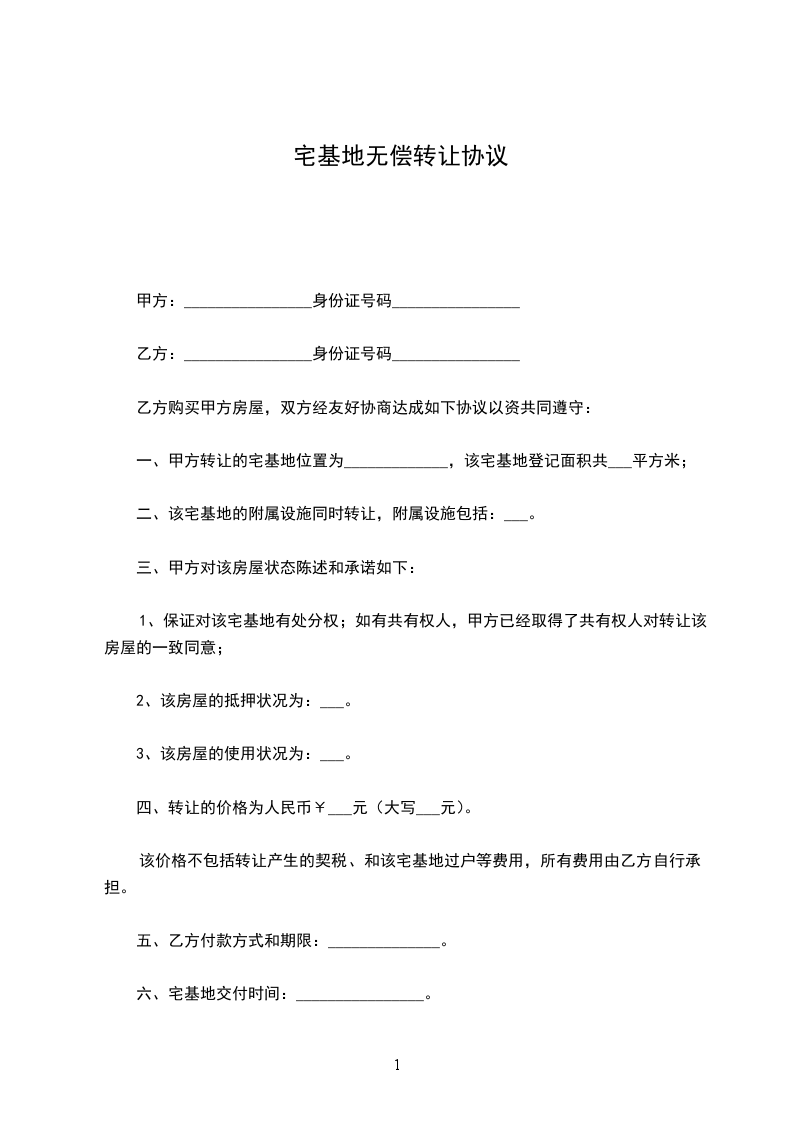 一、甲方转让的宅基地位置为_____________,该宅基地登记面积共___平方米;