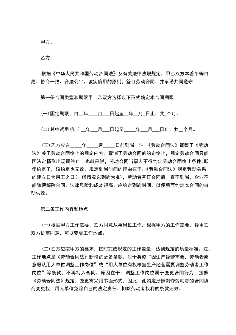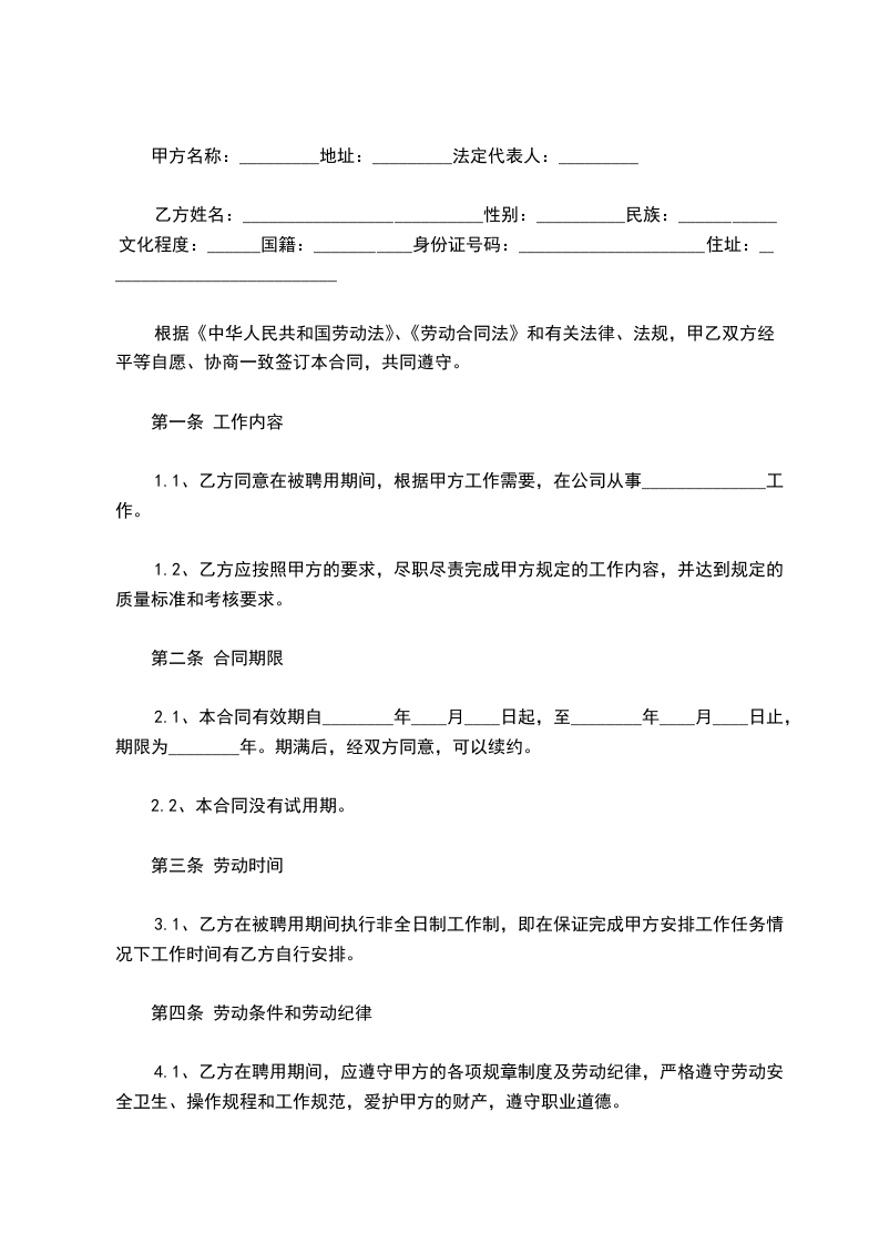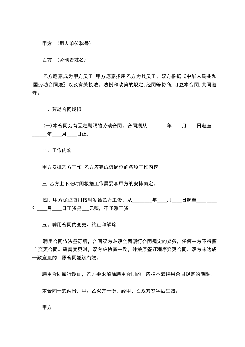 第一条本合同为期限劳动合同,合同期自__________年_____月_____日起至__________年_____月_____日止,共计______个月。