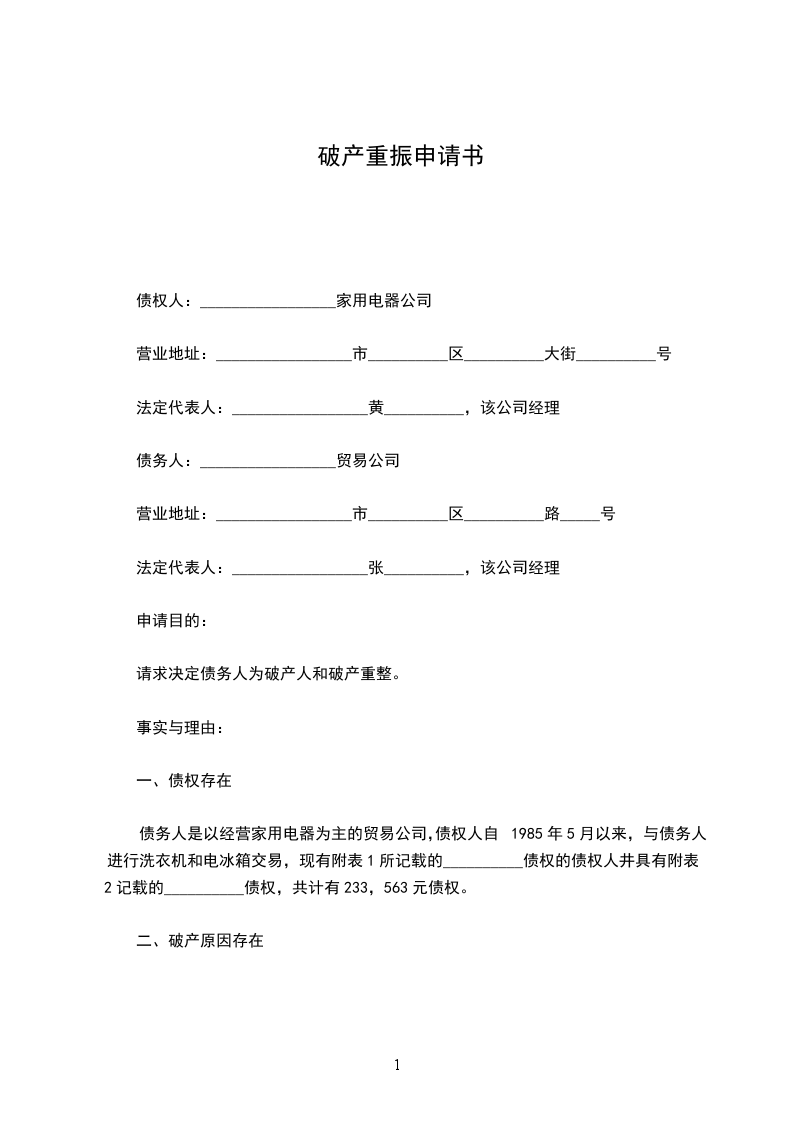 债权人__________家用电器公司(章)