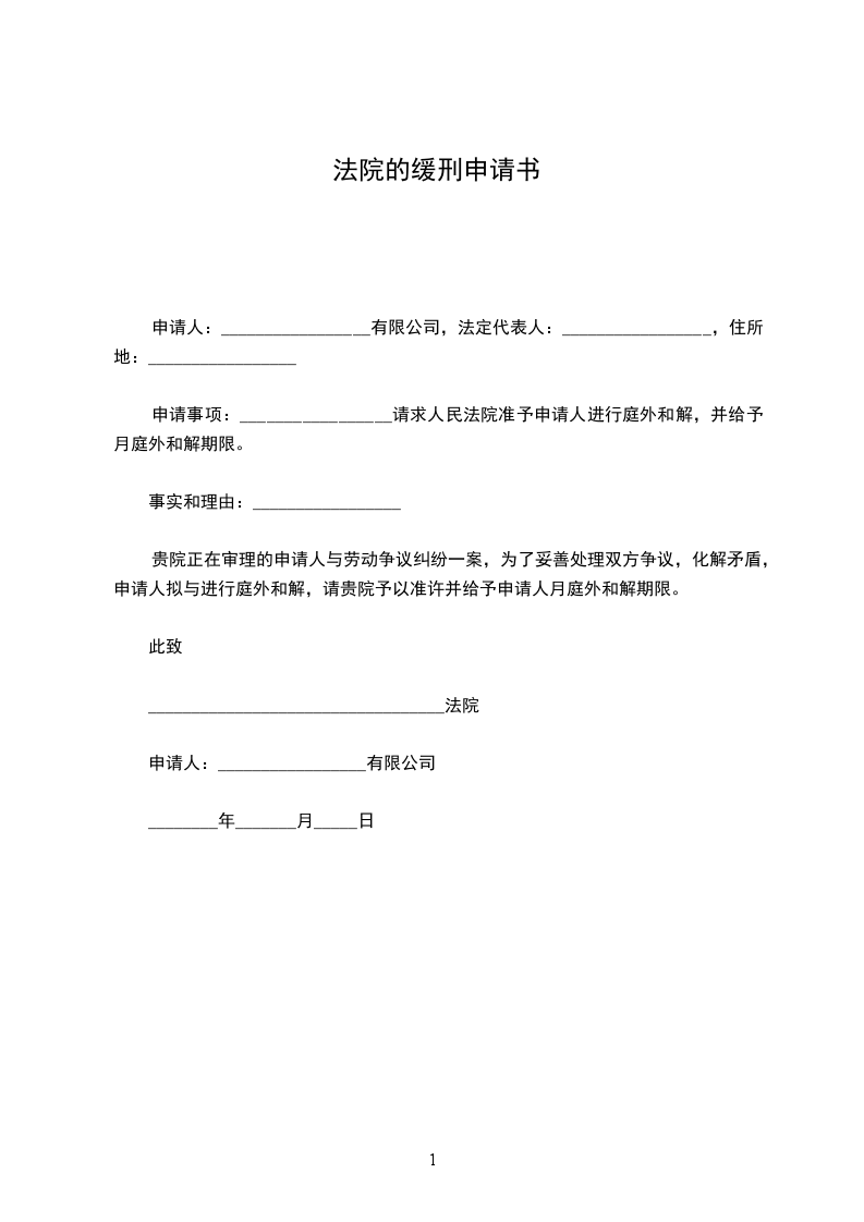 申请事项:_________________请求人民法院准予申请人进行庭外和解,并给予月庭外和解期限。