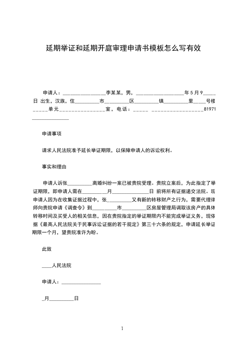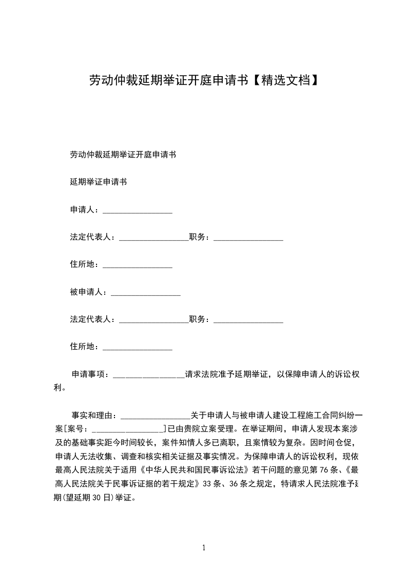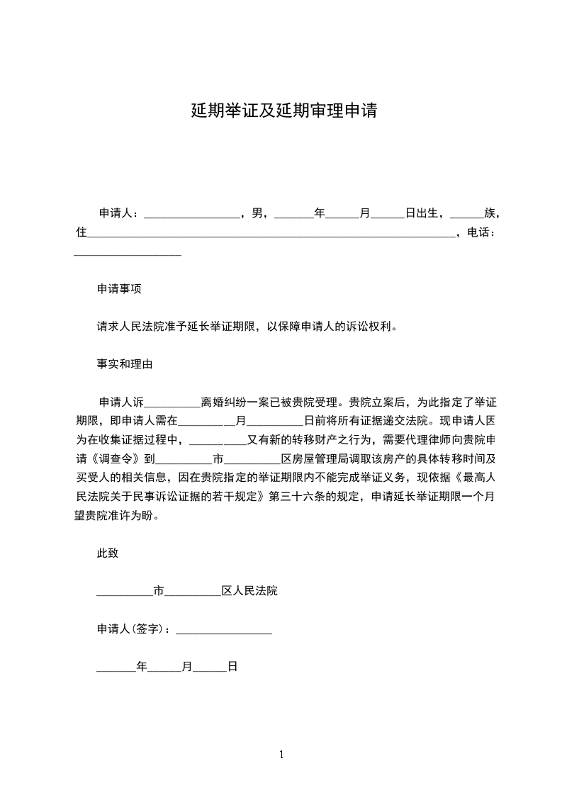 申请事项:_________________请求法院准予延期举证,以保障申请人的诉讼权利。