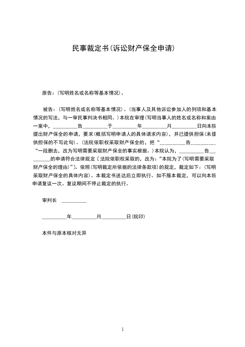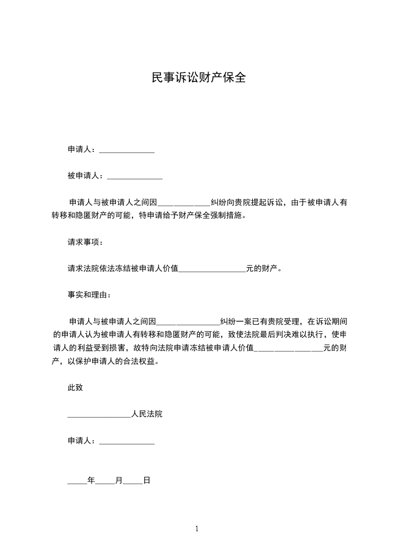 立即冻结被告银行存款人民币__________元或查封、扣押被申请人相当于人民币__________元的其他财产。