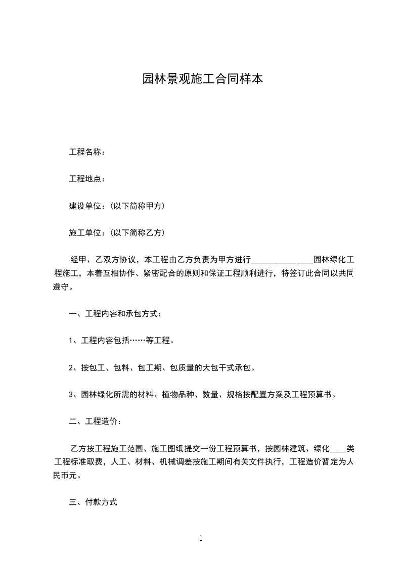 乙方按工程施工范围、施工图纸提交一份工程预算书,按园林建筑、绿化____类工程标准取费,人工、材料、机械调差按施工期间有关文件执行,工程造价暂定为人民币_____元。