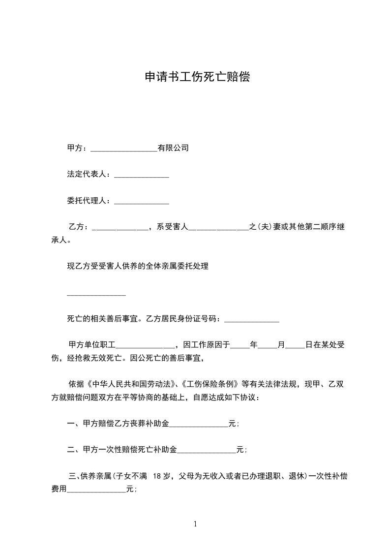 甲方单位职工_______________,因工作原因于_____年_____月_____日在某处受伤,经抢救无效死亡。因公死亡的善后事宜,