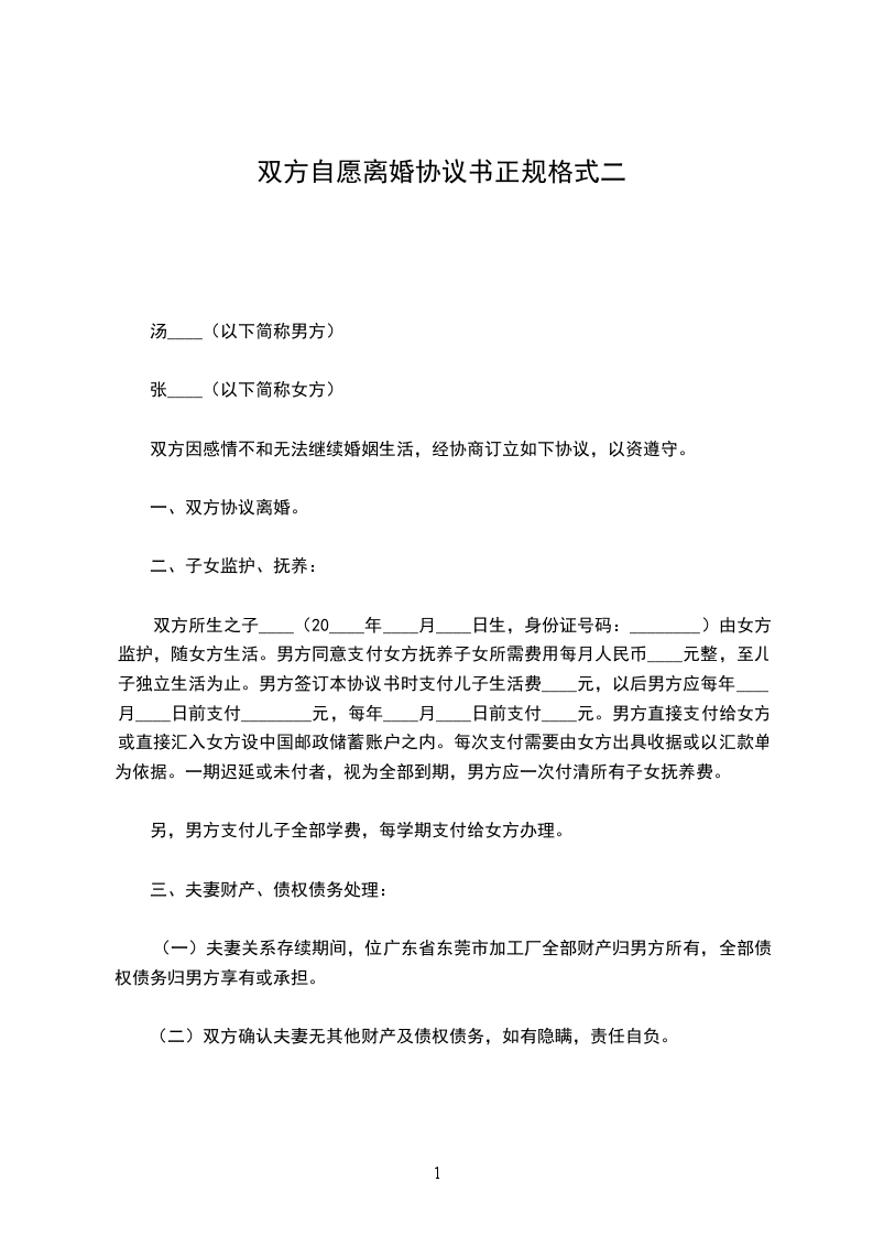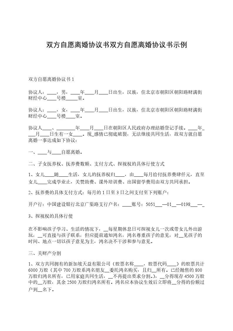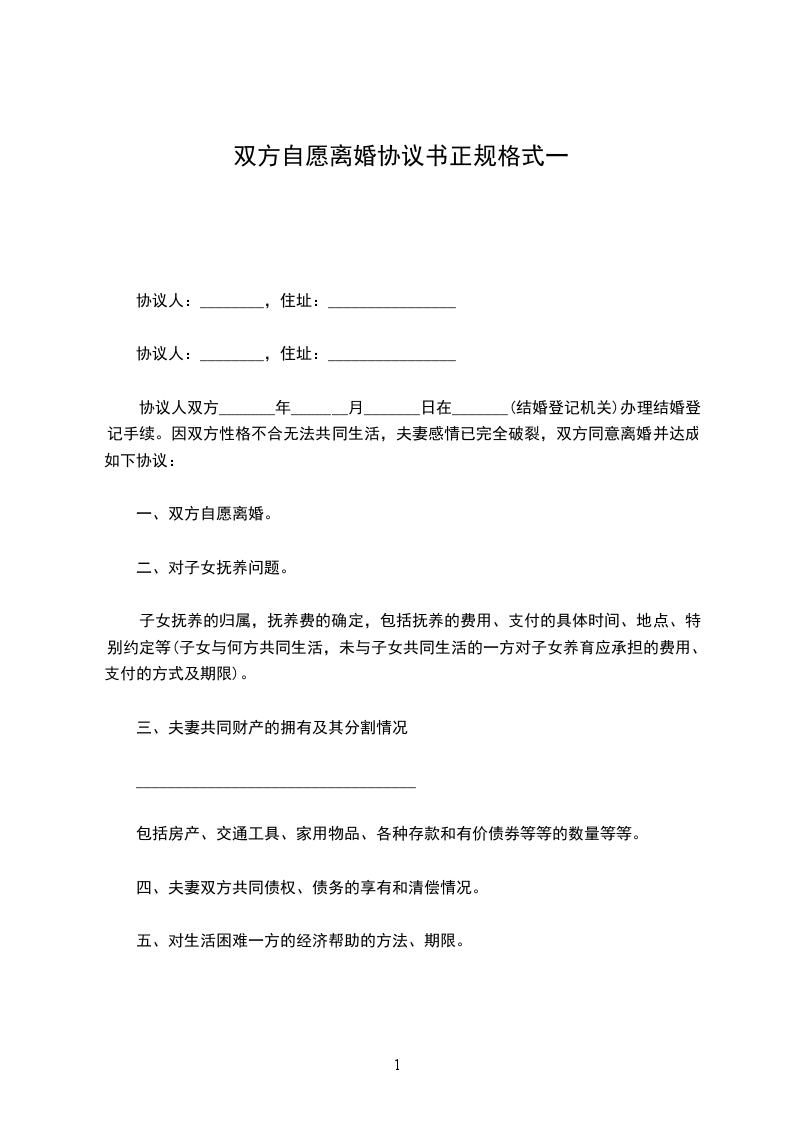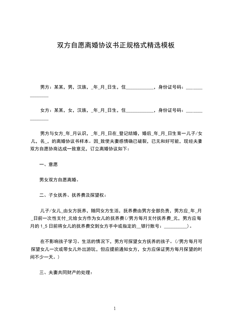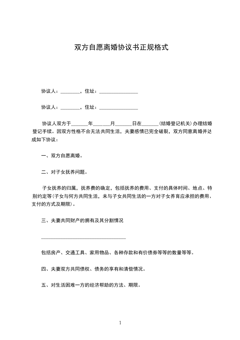 一、双方自愿离婚