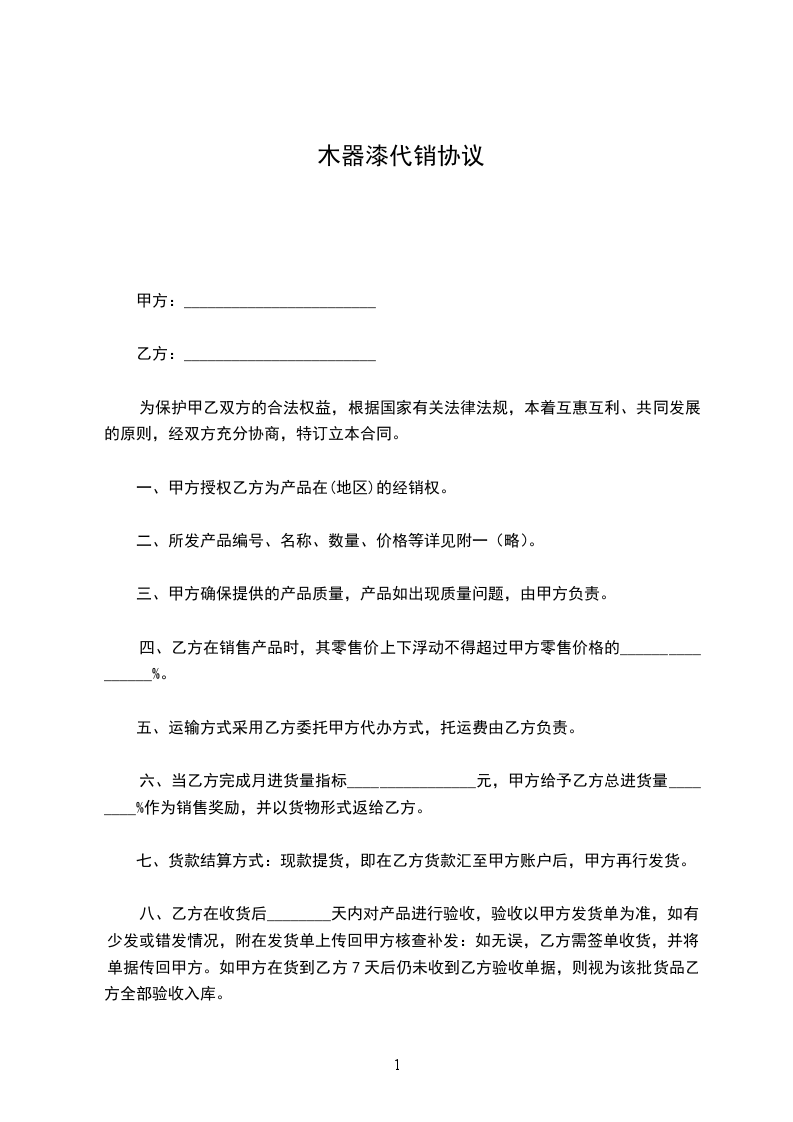 8.甲方提供的货品如有质量问题,准予全部退换,但乙方应保证货品原包装不被损坏,在遵守产品换货相关制度后甲方予以退换。