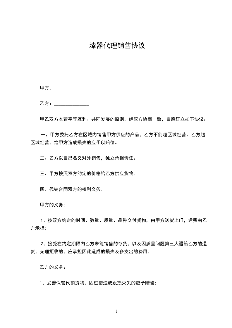 1.甲方授权乙方在规定的销售区域经销_________________品牌专卖、专厅、专柜的产。
