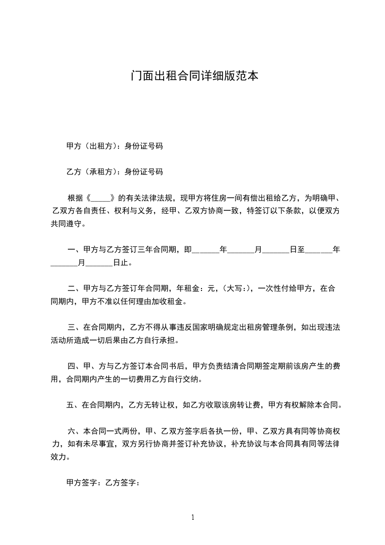 甲方(出租方):身份证号码