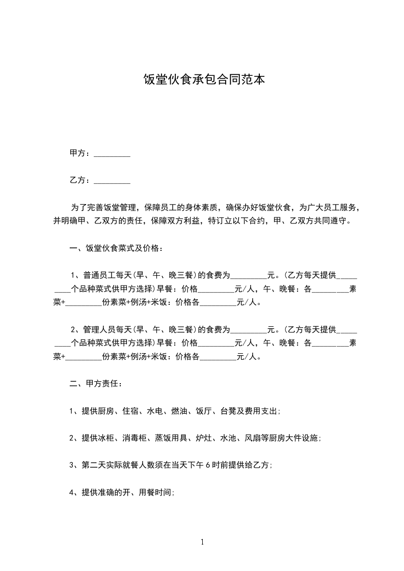 为了完善饭堂管理,保障员工的身体素质,确保办好饭堂伙食,为广大员工服务,并明确甲、乙双方的责任,保障双方利益,特订立以下合约,甲、乙双方共同遵守。