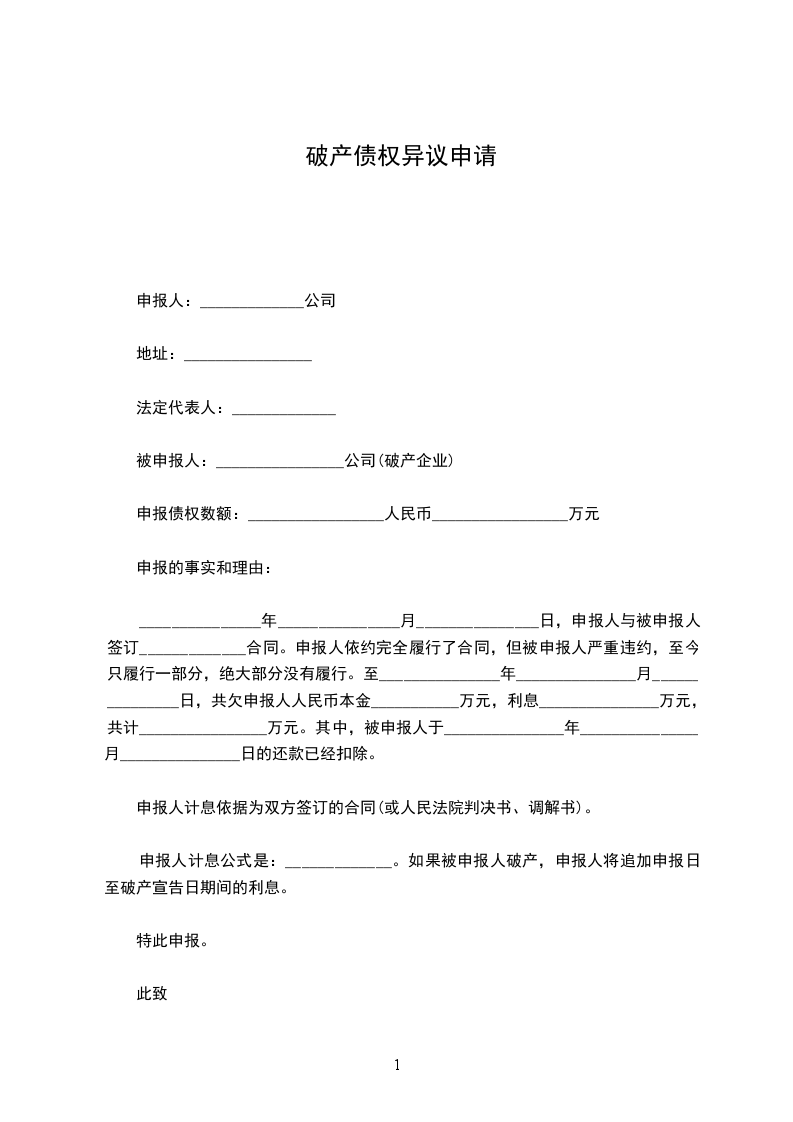 _______________年_______________月_______________日,申报人与被申报人签订_____________合同。申报人依约完全履行了合同,但被申报人严重违约,至今只履行一部分,绝大部分没有履行。至_______________年_______________月_______________日,共欠申报人人民币本金___________万元,利息_______________万元,共计________________万元。其中,被申报人于_______________年_______________月_______________日的还款已经扣除。
