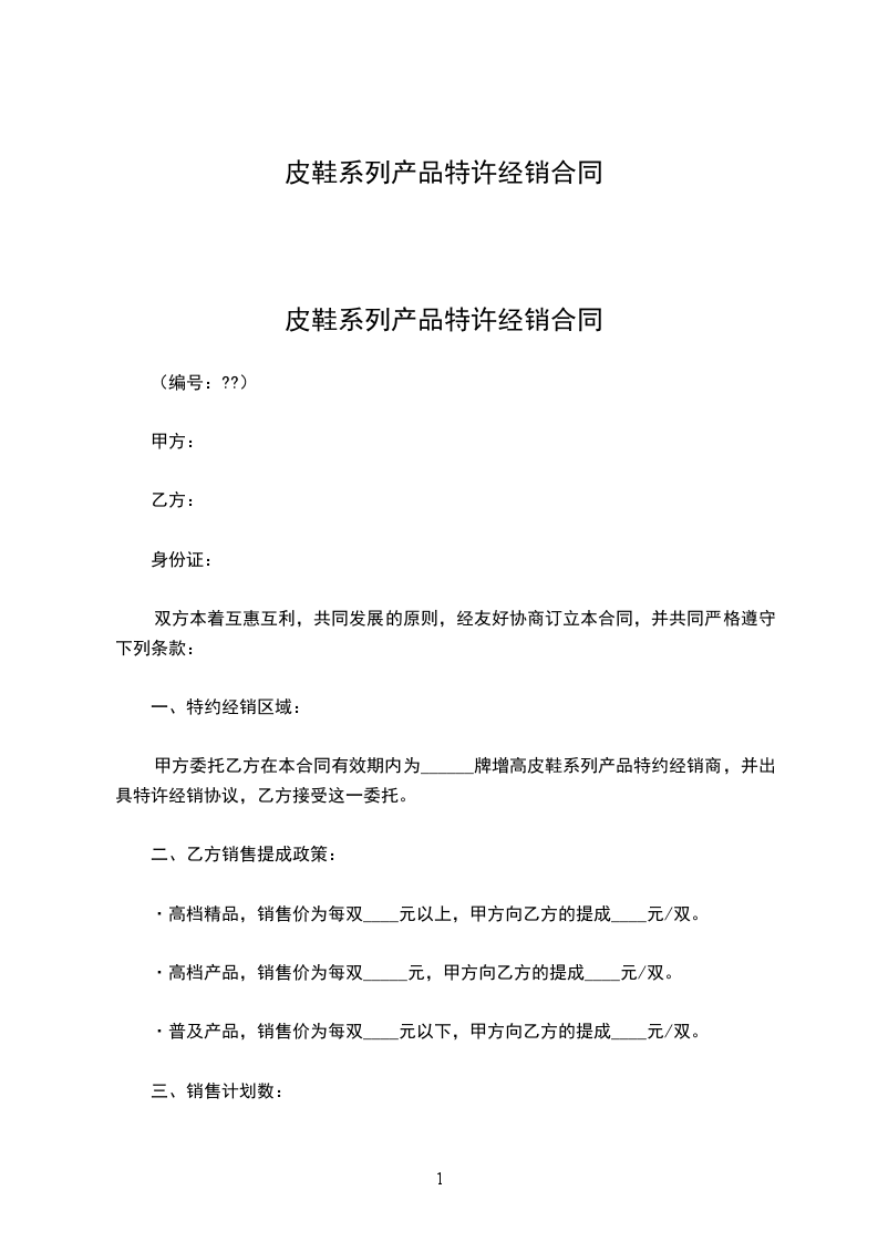 甲方委托乙方在本合同有效期内为______牌增高皮鞋系列产品特约经销商,并出具特许经销协议,乙方接受这一委托。