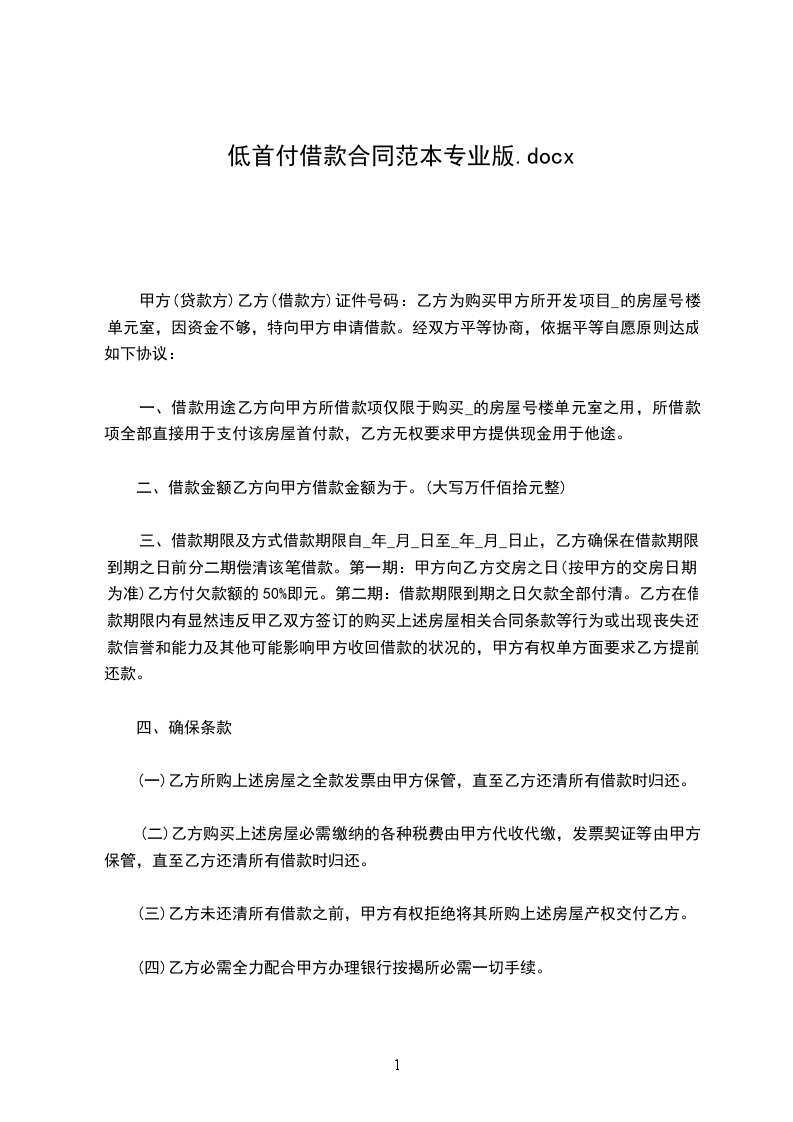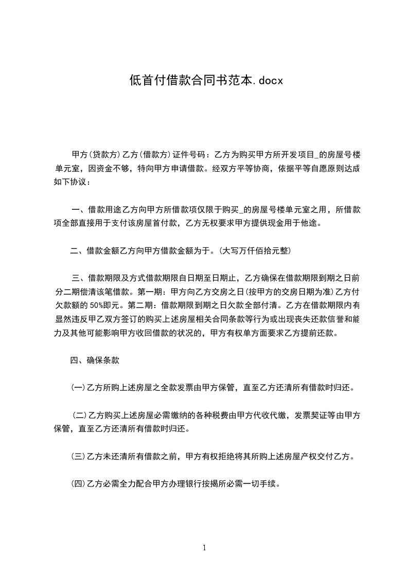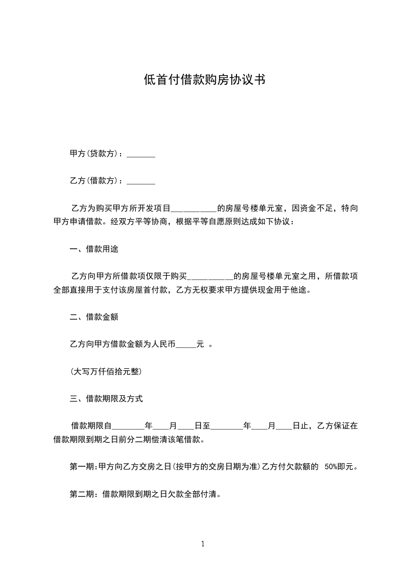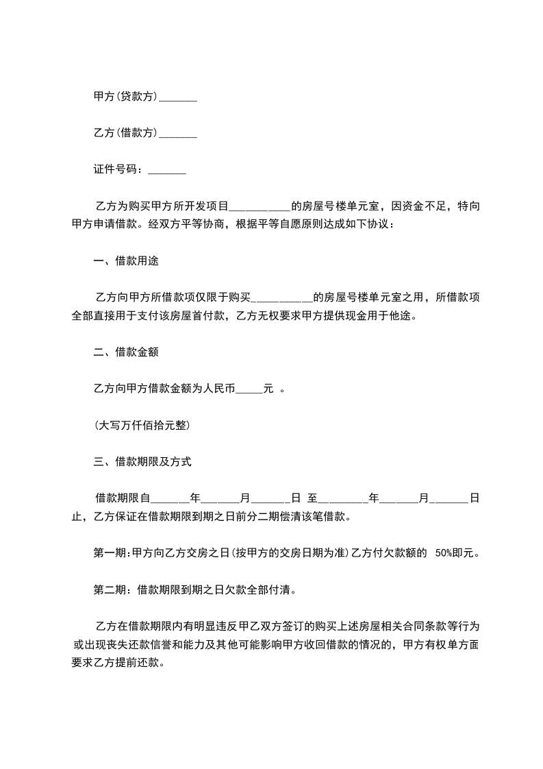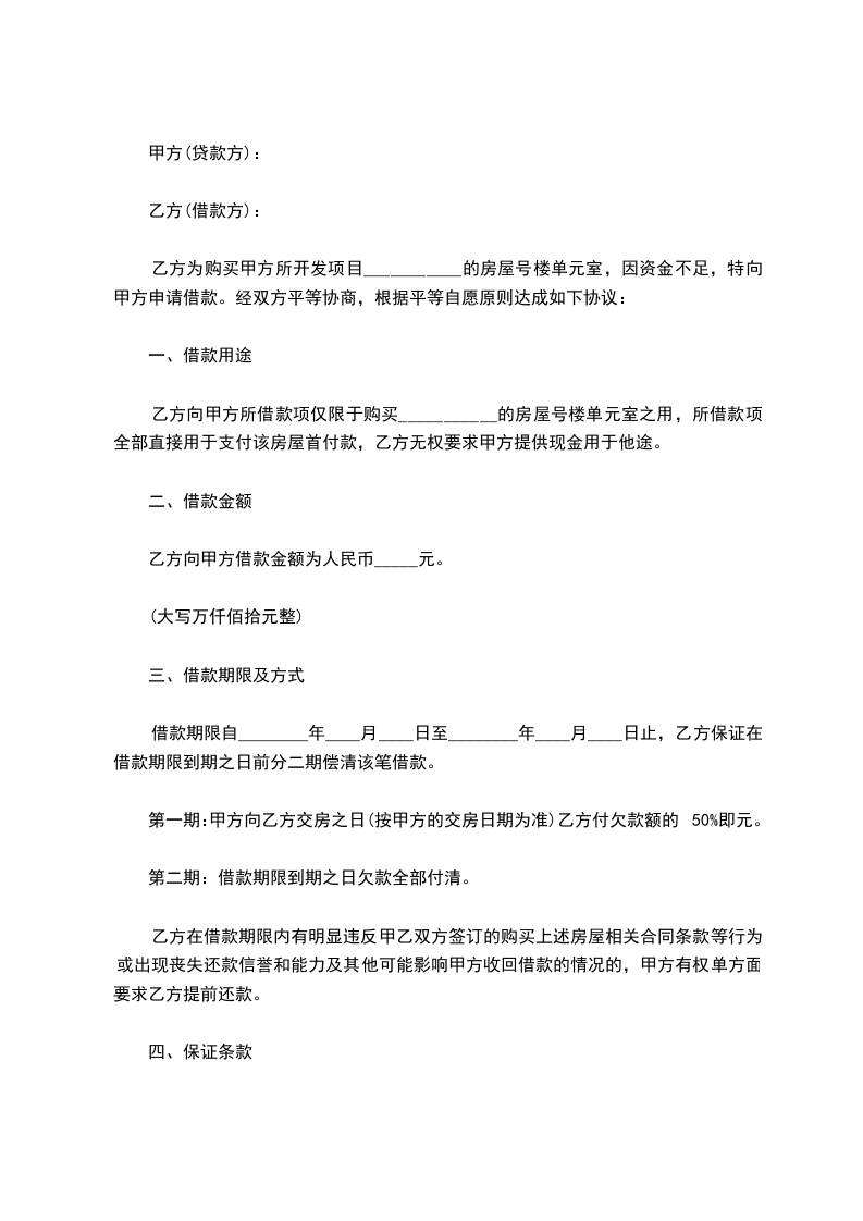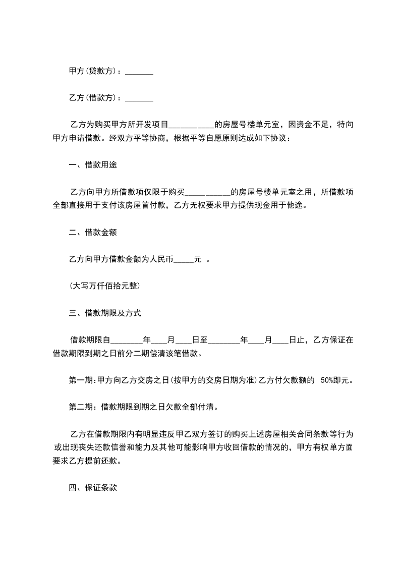 乙方为购买甲方所开发项目___________的房屋号楼单元室,因资金不足,特向甲方申请借款。经双方平等协商,根据平等自愿原则达成如下协议: