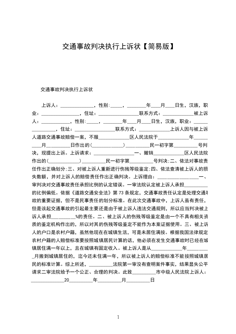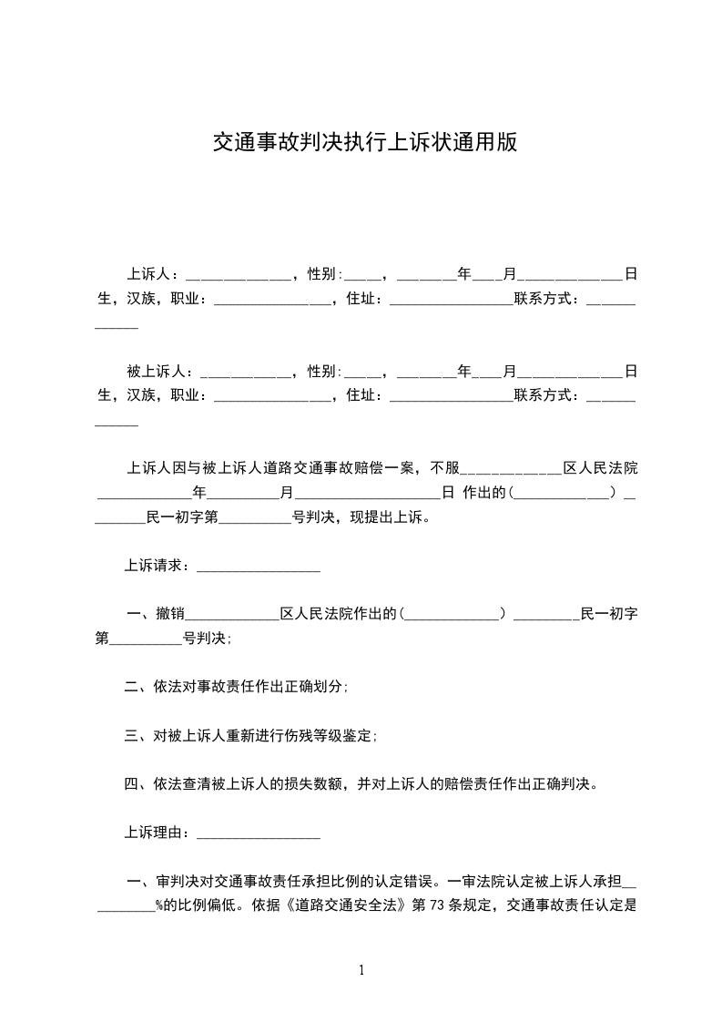 事实与理由:_________________申请人与被申请人交通事故纠纷一案,于_____年_____月_____日经_____________法院(20_____)_______________民初_______________号判决书判决并生效。判决书确定被申请人应于_____年_____月_____日前赔偿申请人__________元。由于被申请人未按判决规定的期限内赔偿申请人__________元。故申请人请求法院强制执行。