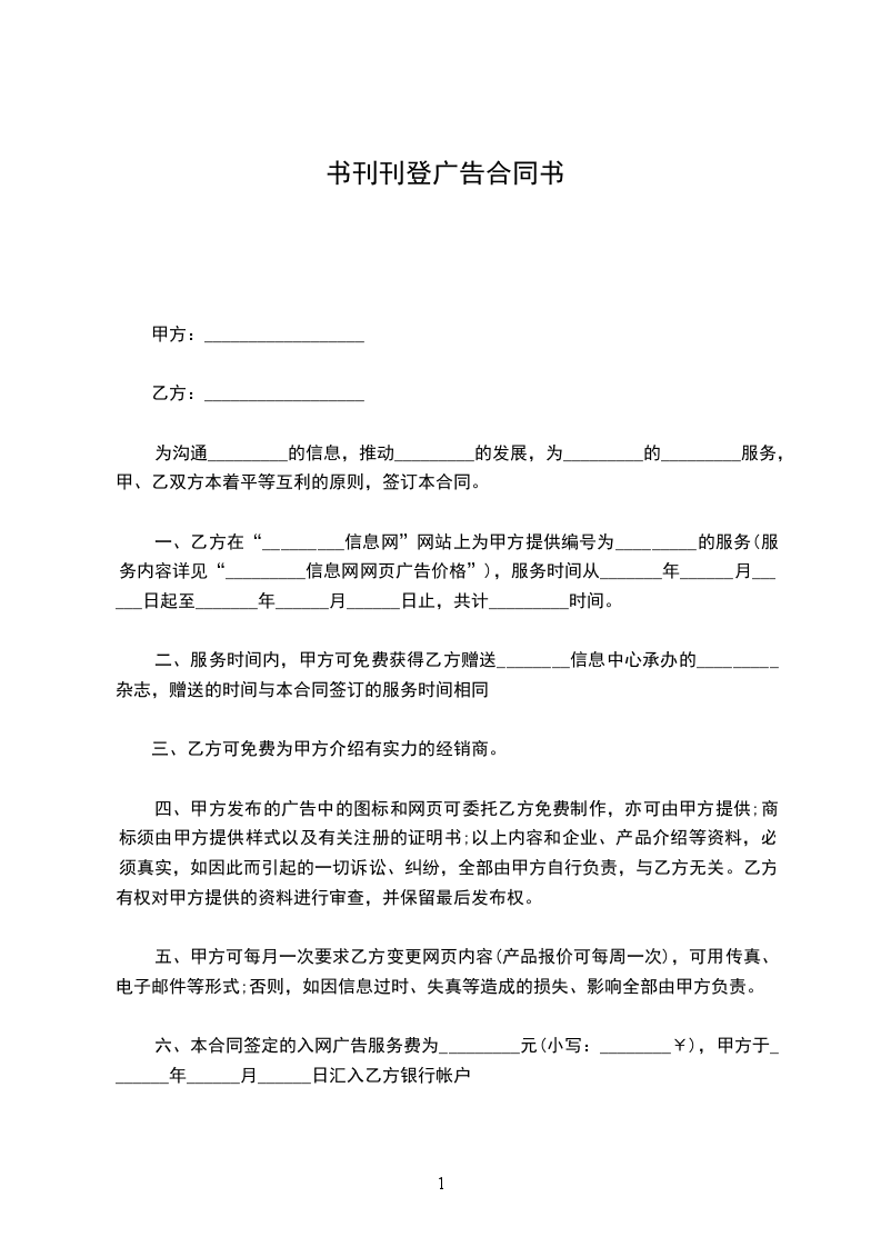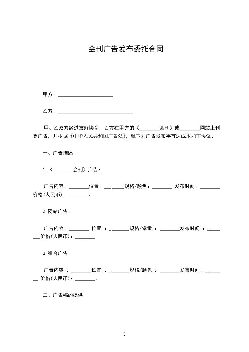 会刊广告征订合同