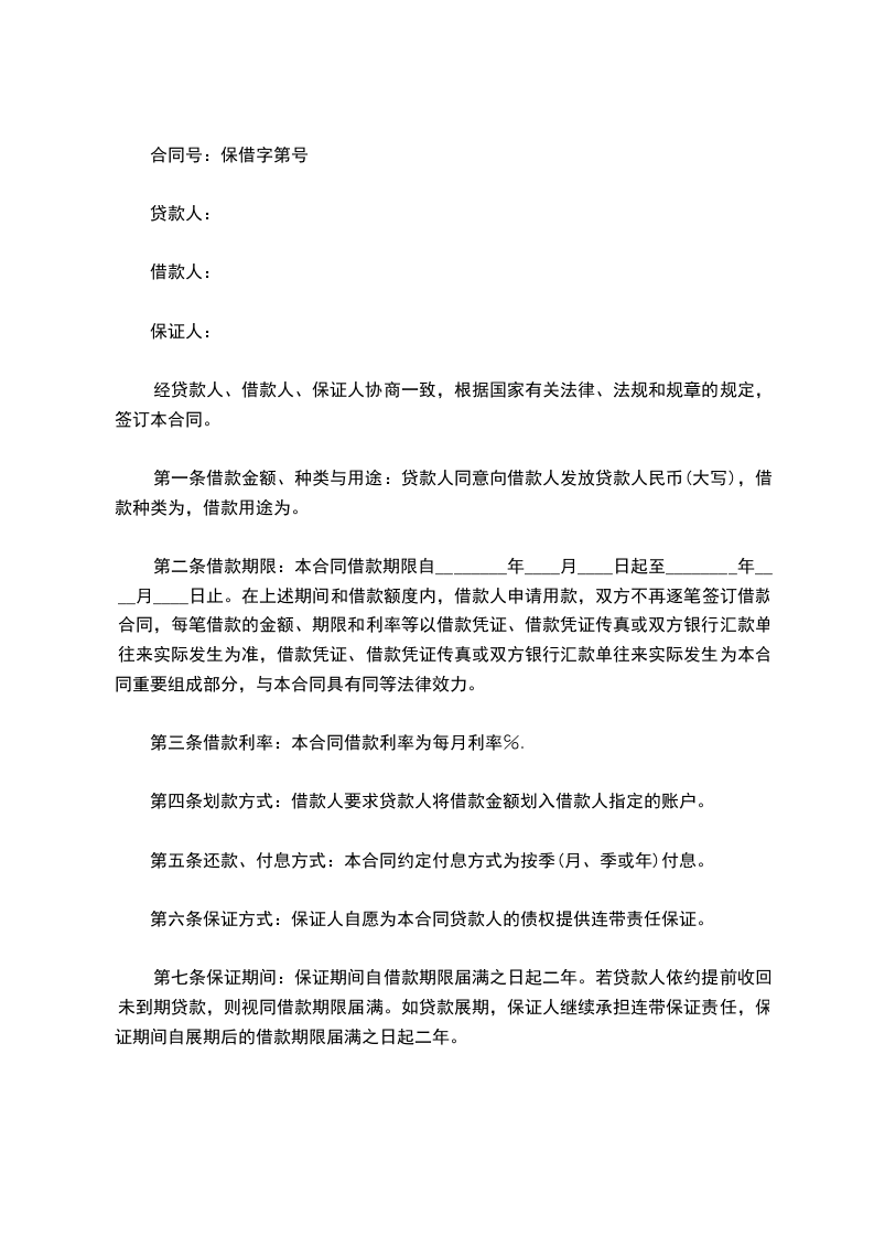 六、本合同一式份,贷款人执二份,借款人、保证人、各执一份,效力同等。