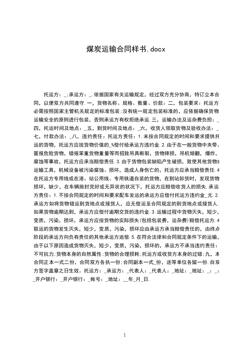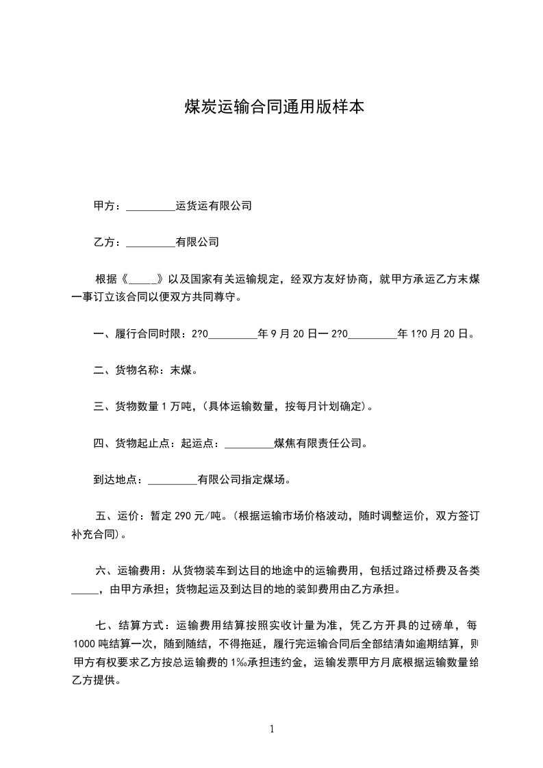 根据《_____》以及国家有关运输规定,经双方友好协商,就甲方承运乙方末煤一事订立该合同以便双方共同尊守。