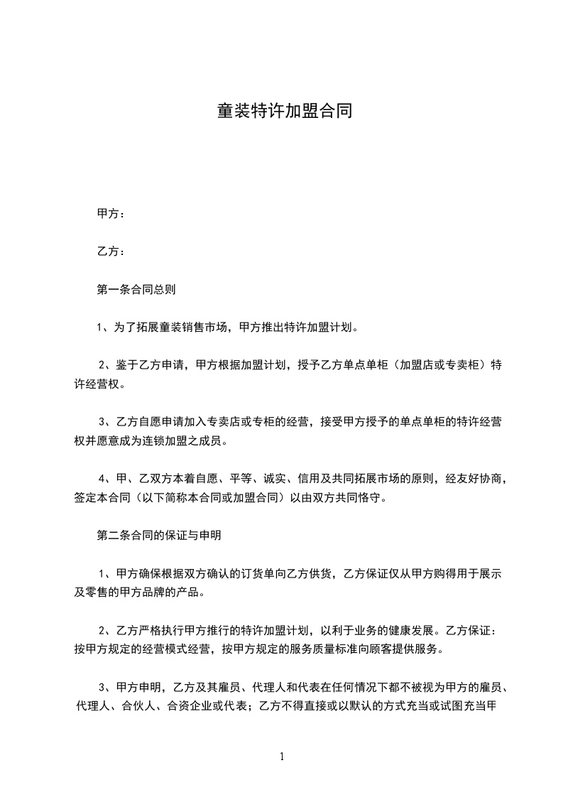1、为了拓展童装销售市场,甲方推出特许加盟计划。